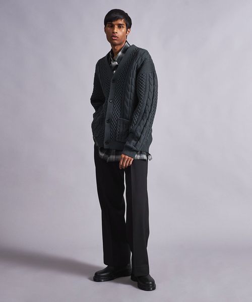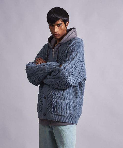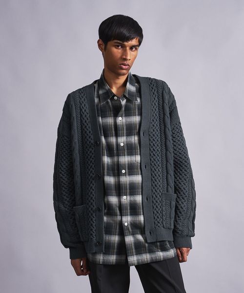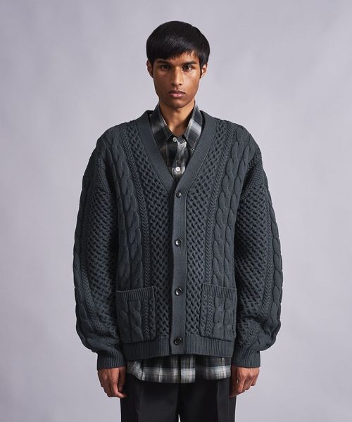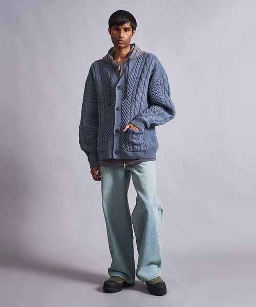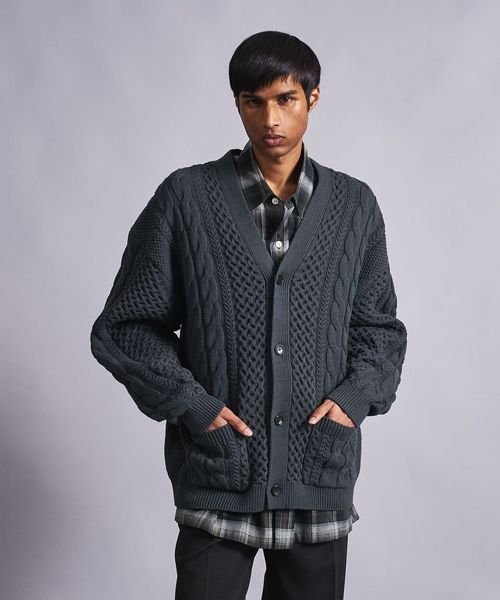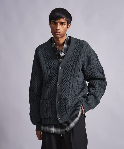 <monkey time> コットン アクリル フィッシャーマン カーディガン
