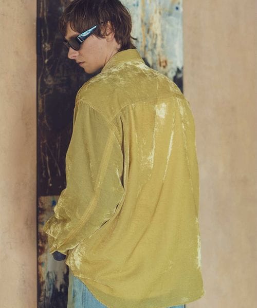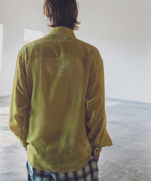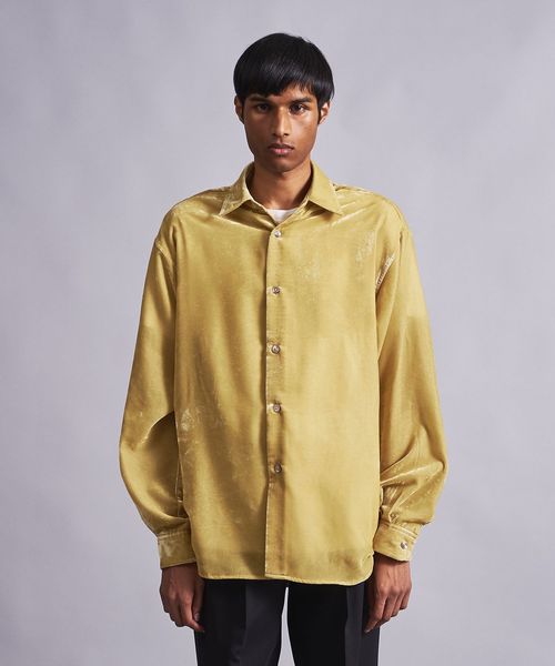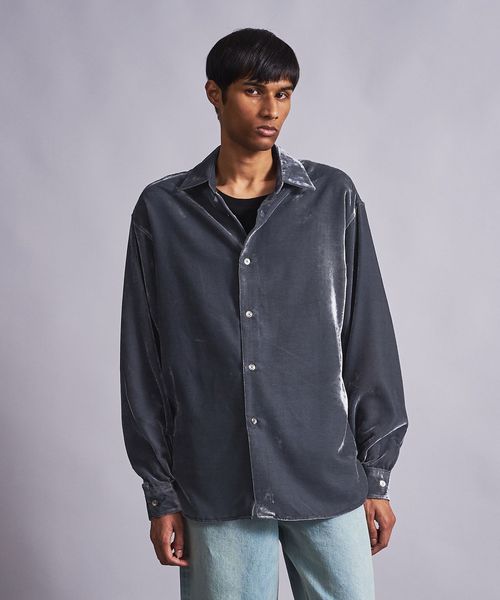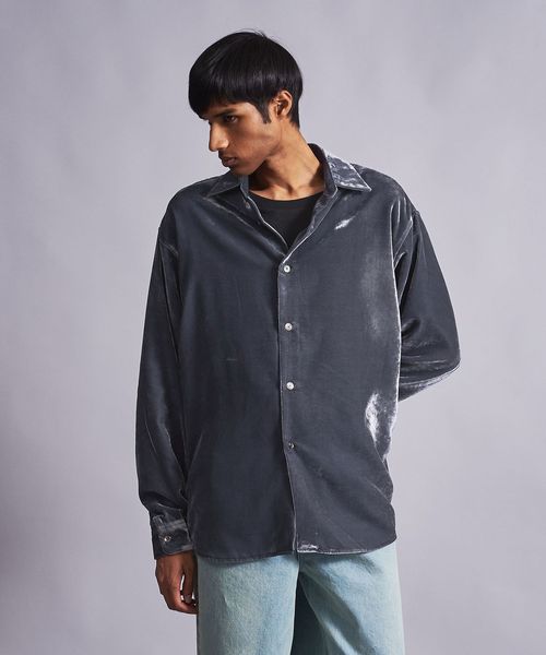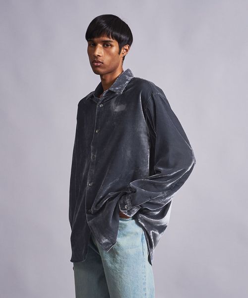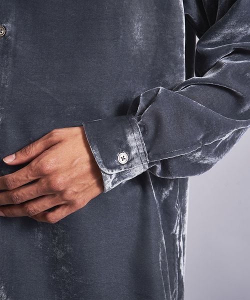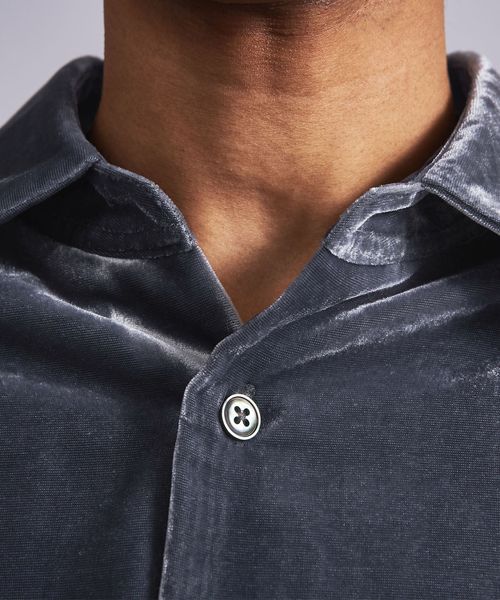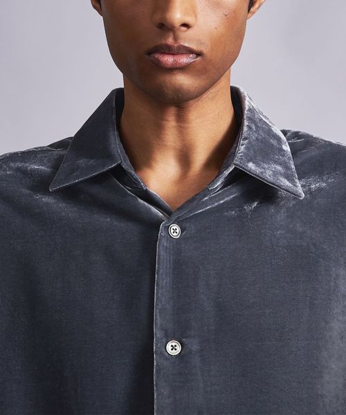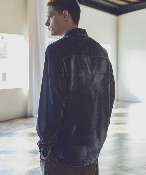 独特な光沢の陰影がある薄手のベルベット素材を使用したシャツ。