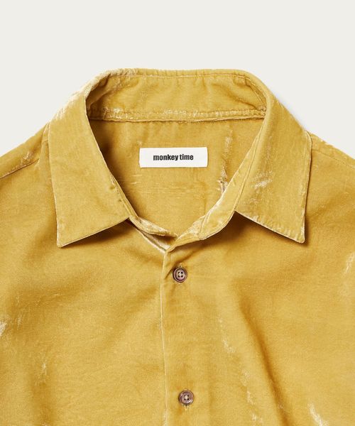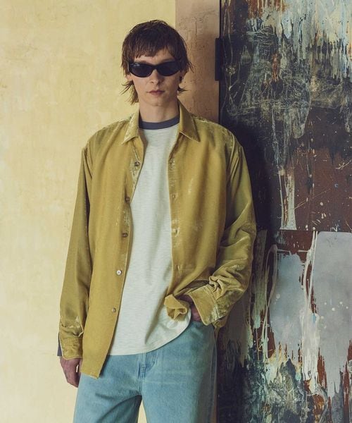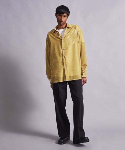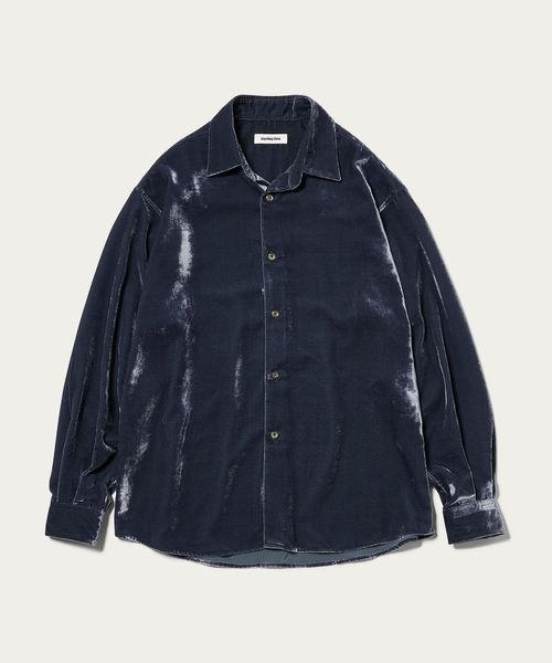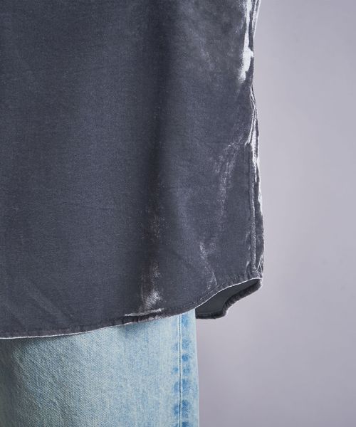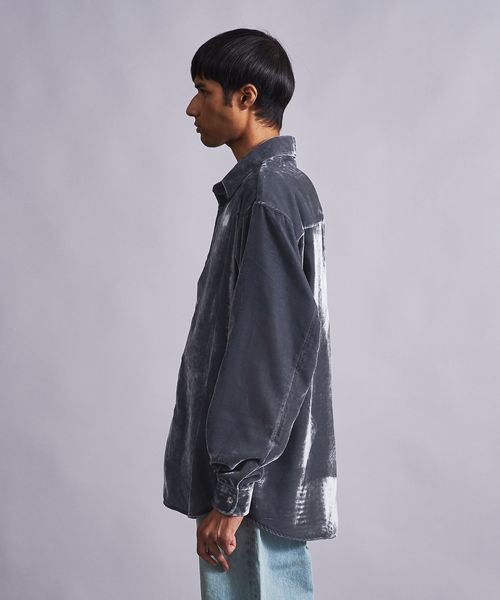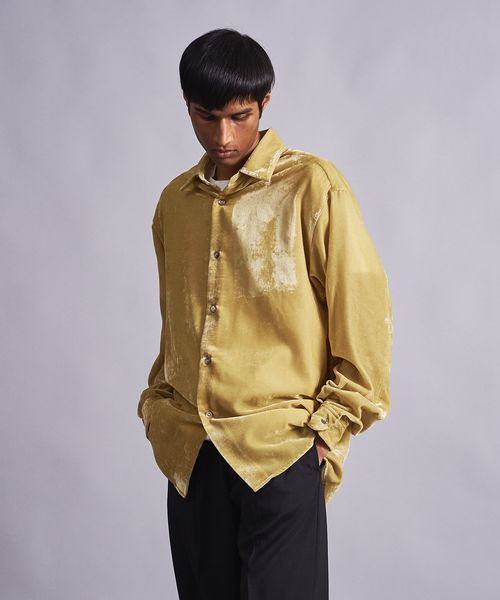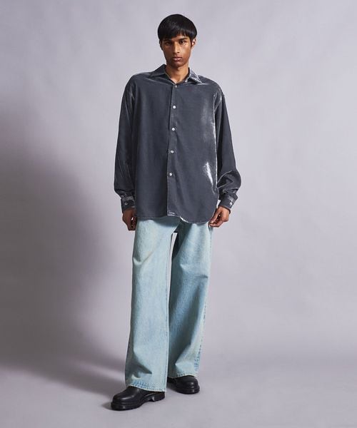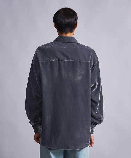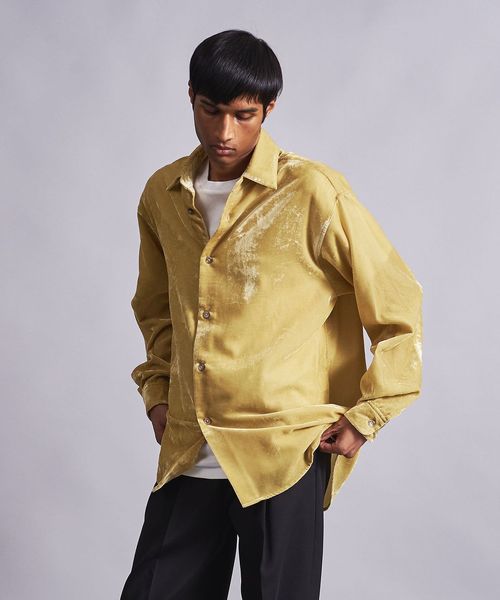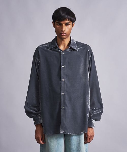 独特な光沢の陰影がある薄手のベルベット素材を使用したシャツ。