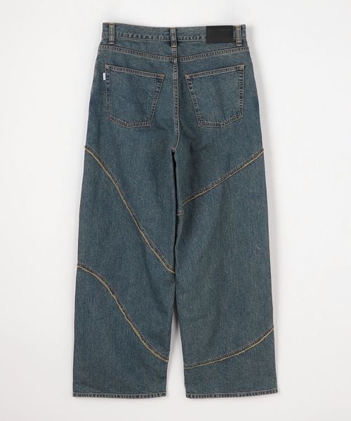 波線状の切り替えが特徴のワイドデニムパンツ。