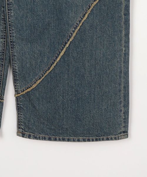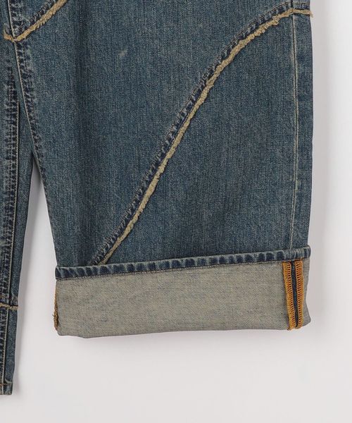 切り替えをカットオフ仕様にすることで、よりデザインのアクセントを引き出し表情のあるデニムパンツに仕上がっています。