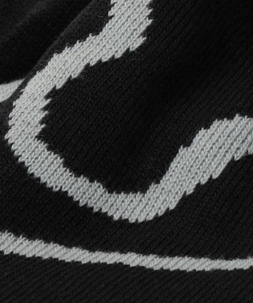 シンプルな編地にコントラストのきいた配色がコーディネートにアクセントをプラス。