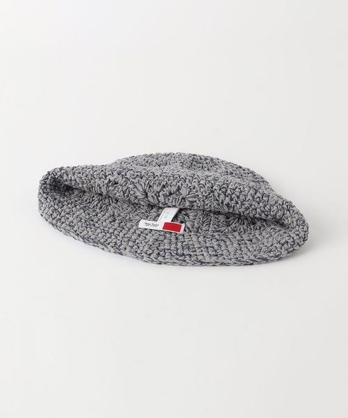 2色の糸をミックスしたドライタッチの手編みニットハット。
