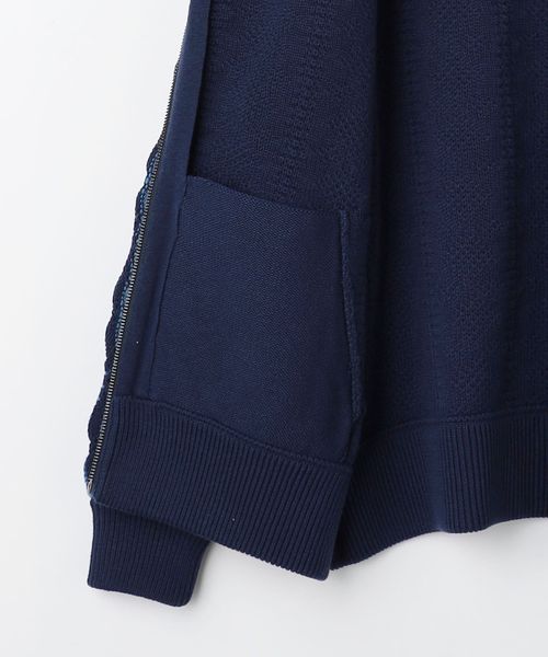 スポーティなルックスにタック模様編みで上品さをプラスしています。