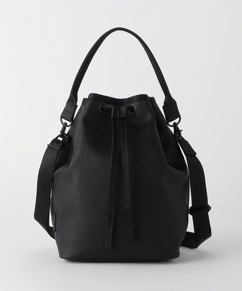 ハンドストラップで手持ち、調節可能なショルダーストラップで斜め掛けで使える巾着をモチーフとした2WAY仕様のバッグ。