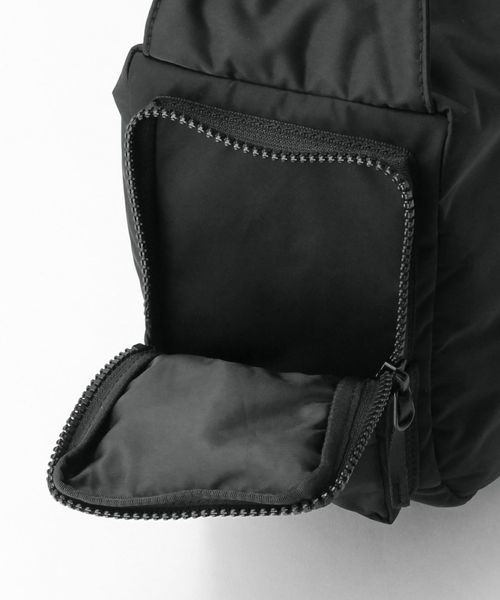 両サイドには、モバイルフォン、ワイヤレスイヤホンなどの小物収納に便利なポケットを装備しています。