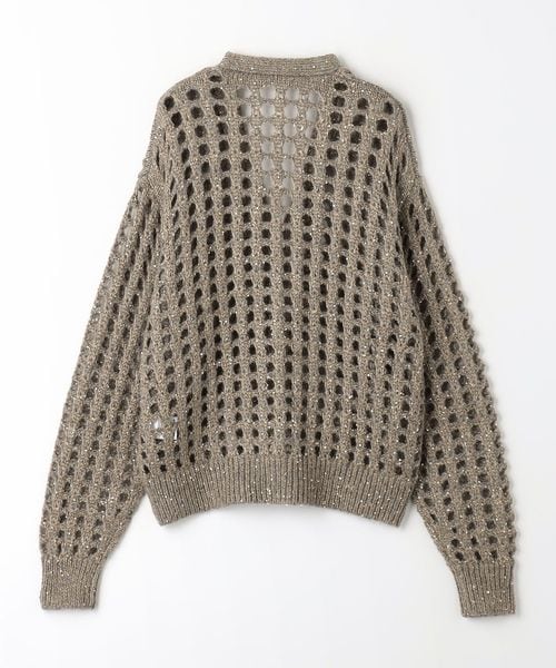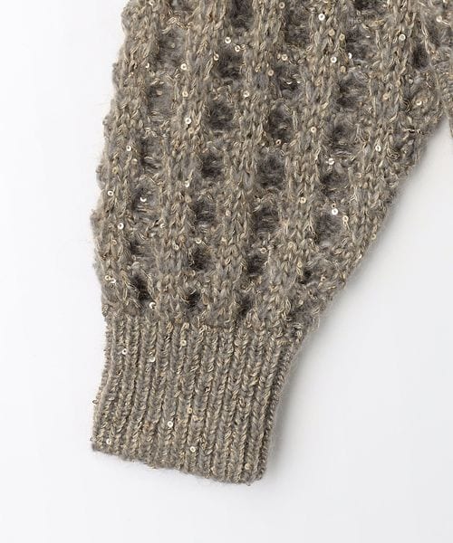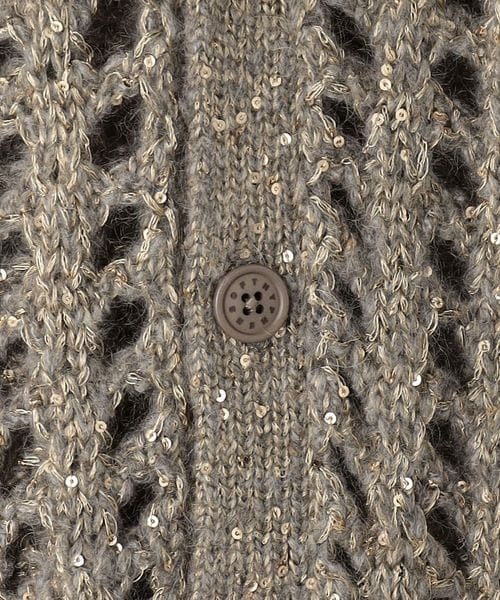 クロシェ風編地のスパンコール入りローゲージカーディガン。