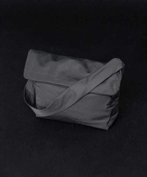 ナイロンツイル素材を使用した上部がかぶせタイプになったショルダーバッグ。