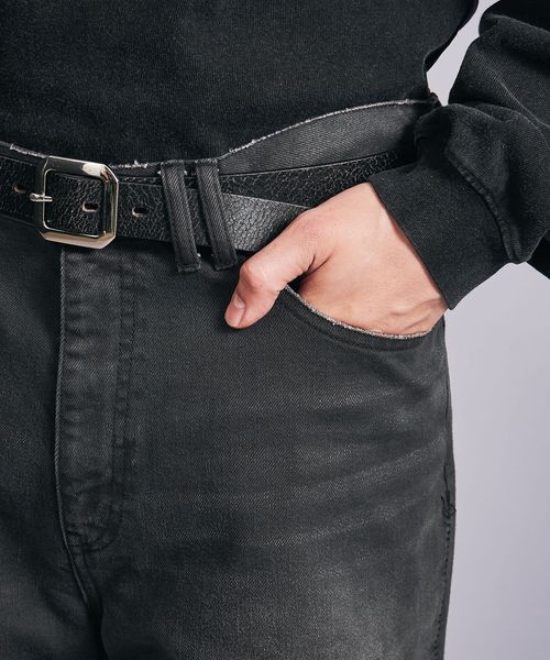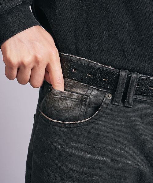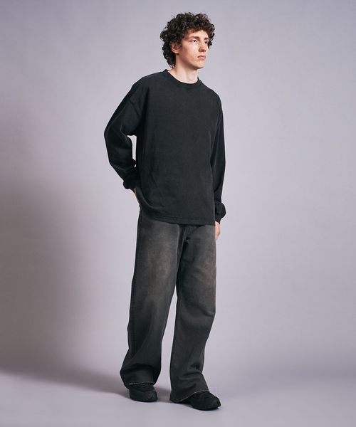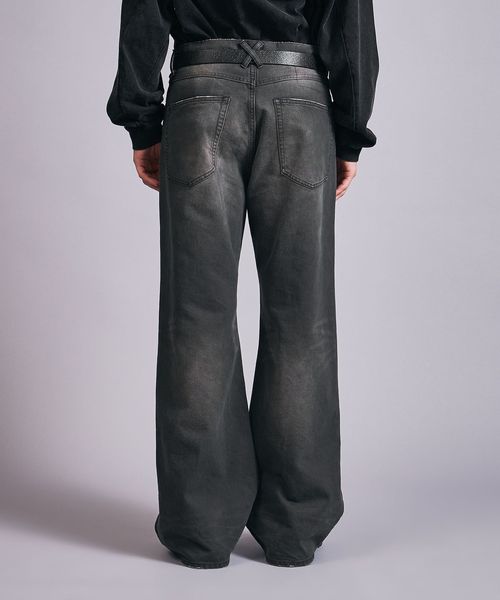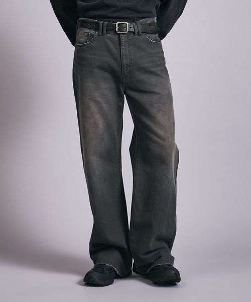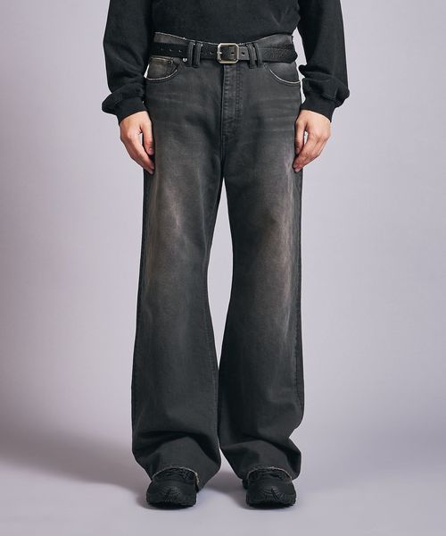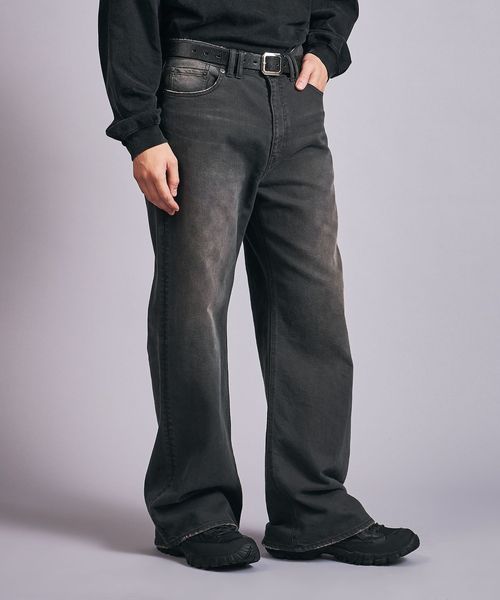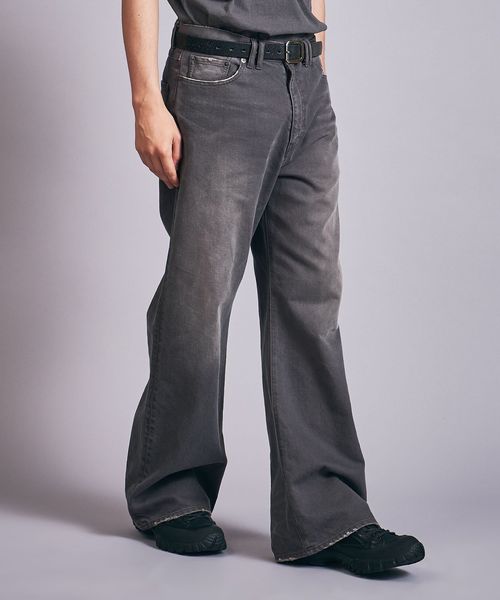 ガーメントダイ ルーズ セミフレア デニム パンツ