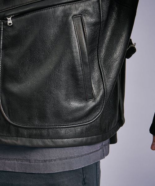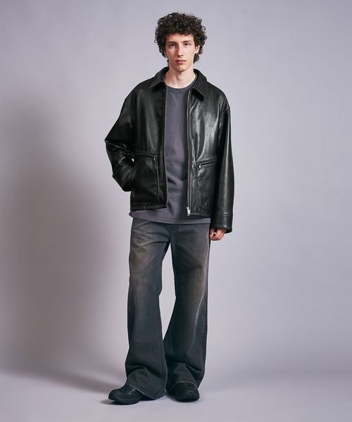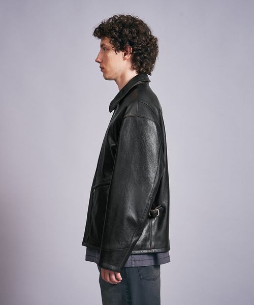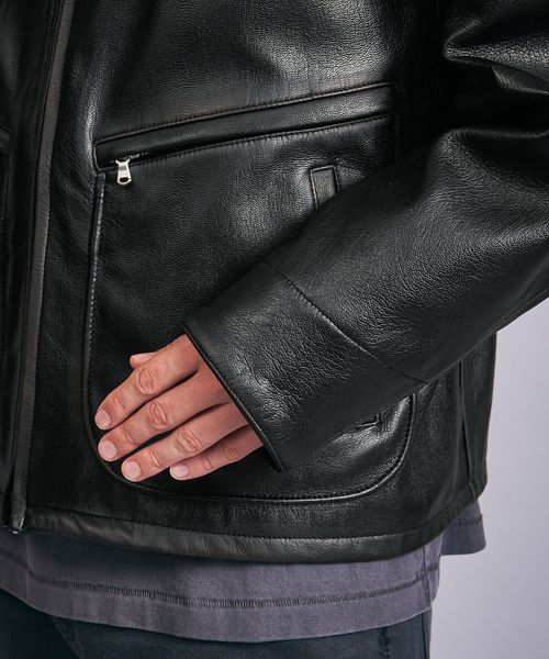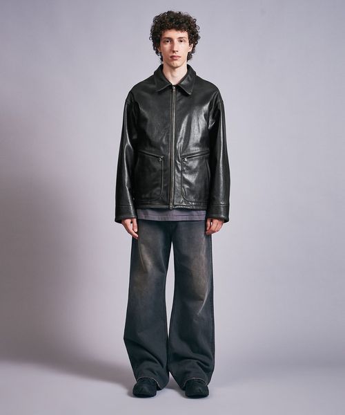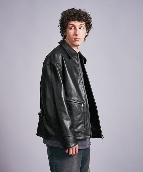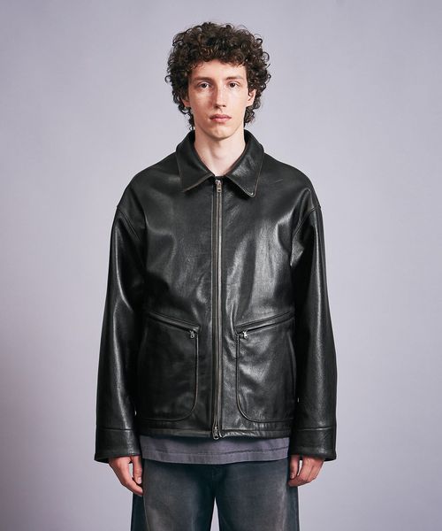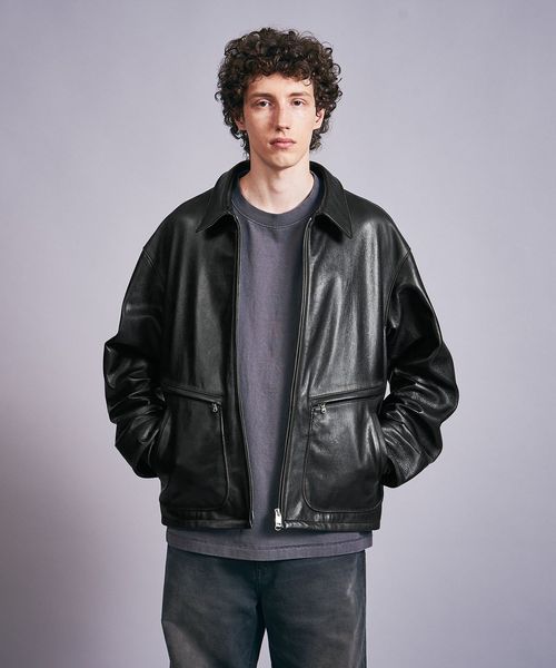 ビンテージライクなシボ感が特徴的な山羊革を採用したオーバーサイズのフライトジャケット。