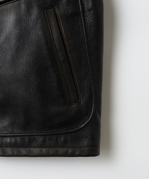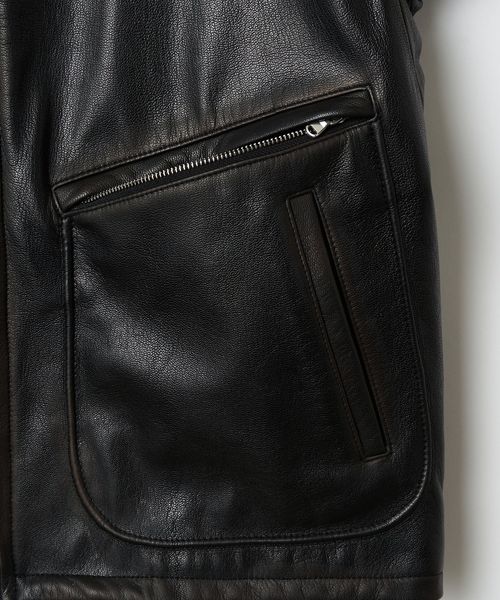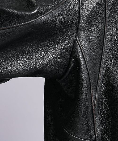 全体に光沢感を出すことで単なるビンテージではなく今日的なモードなレザージャケットに仕上げました。