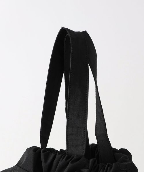 開口部にはサイズ調整がしやすいストッパー付きのゴムシャーリングポケット。