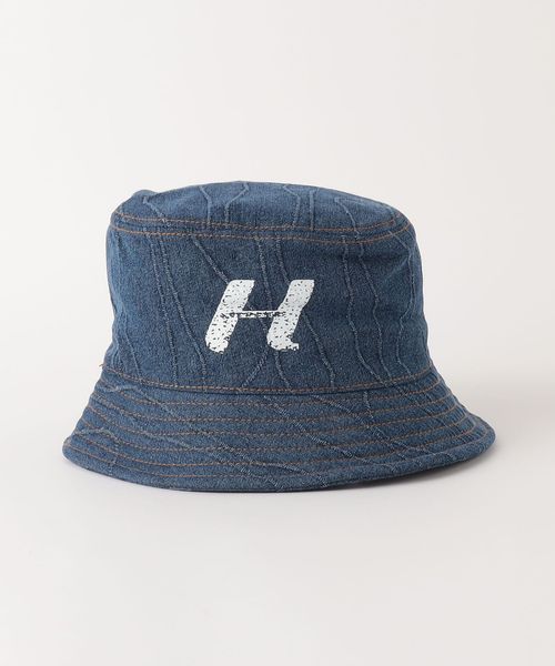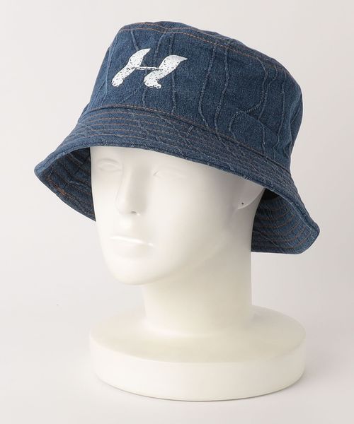 擦れ感のあるブランドロゴがアクセントのバケットハット。