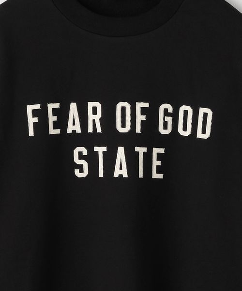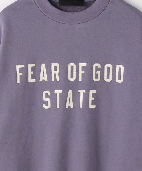 カレッジロゴにインスパイアされた「FEAR OF GOD STATE」のレタリングがフロントにステッチされたクルーネックスウェット。
