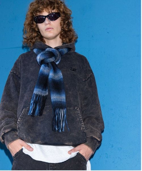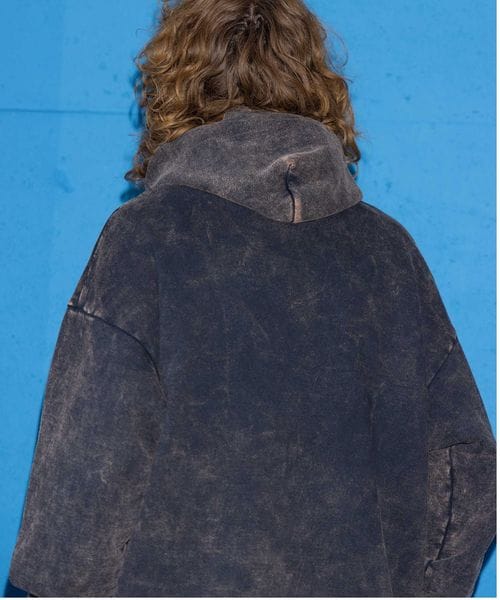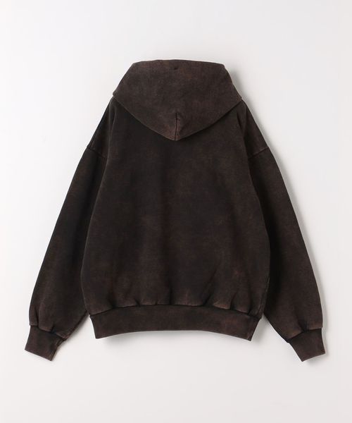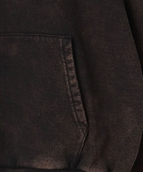 生地にオーバーダイで退色感を表現したスウェットフーディー。