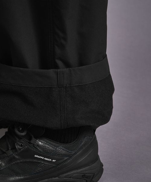 表地にハリコシのあるポリエステル素材、裏地に起毛トリコットを使用したパンツ。