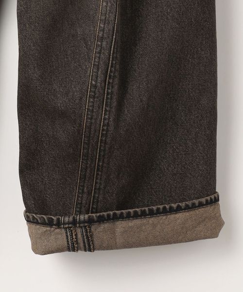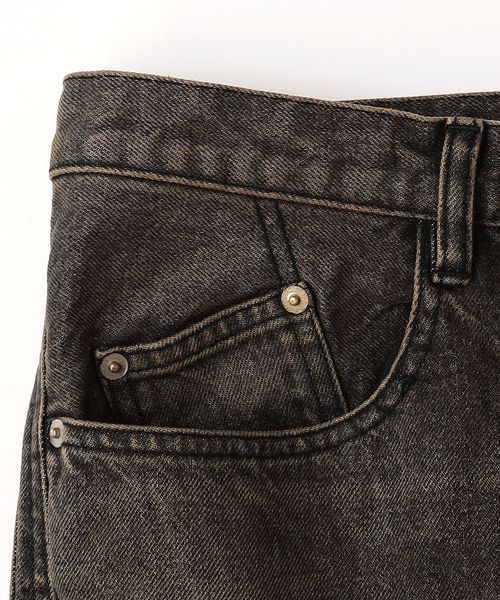 14オンスのムラ糸空紡糸によるブラックデニムを使用したワイドシルエット立体裁断ジーンズ。
