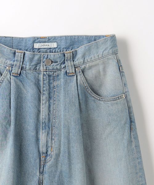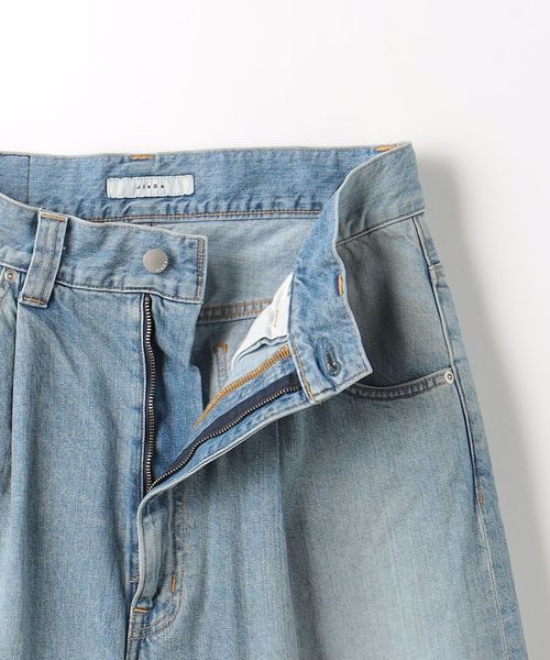 ダメージ加工が特徴の1タックを配したストレートワイドデニム。