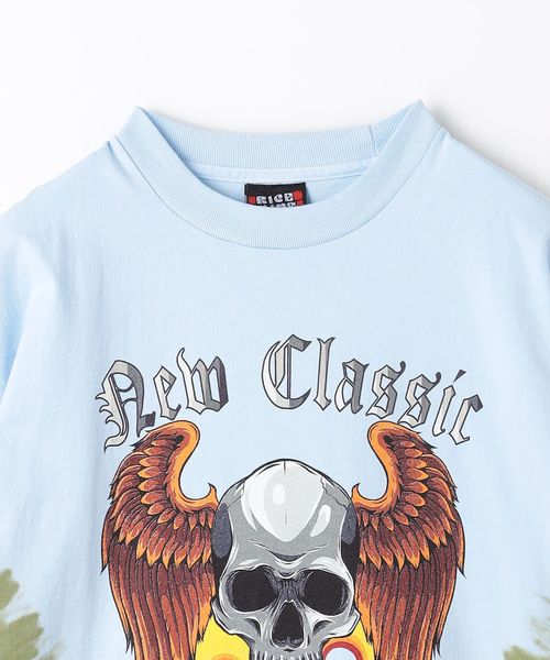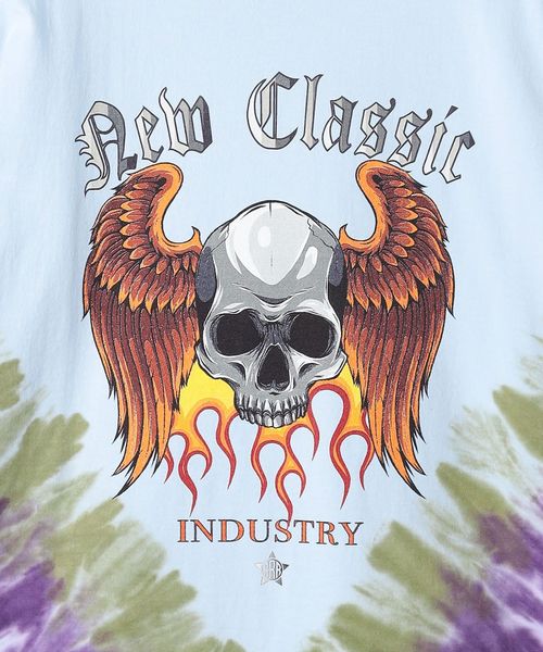 タイダイ柄とスカルモチーフのプリントが個性的なTシャツ。