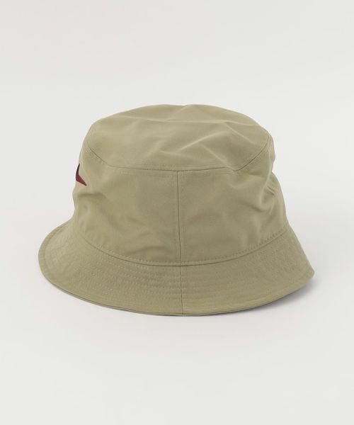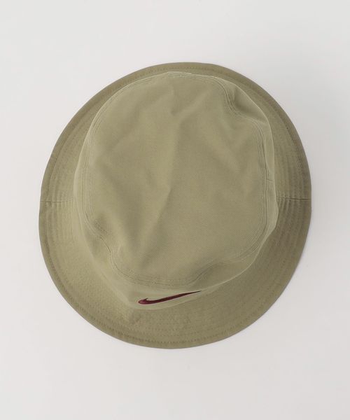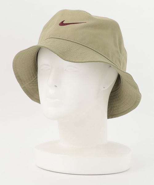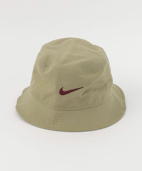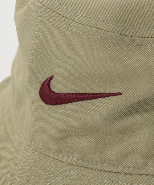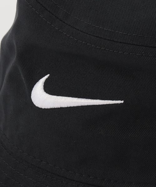 コントラストの効いたカラーのスウッシュロゴを前面パネルに刺繍したバケットハット。