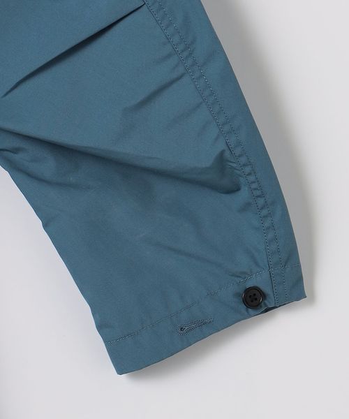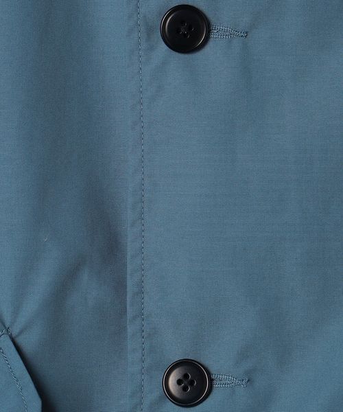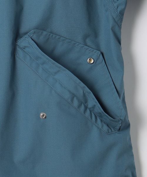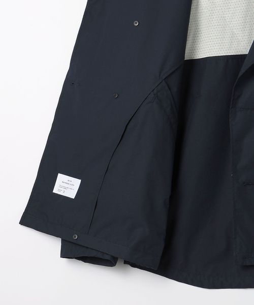 表地はクラシックなアウトドアウェアに採用されていたポリエステル65%、コットン35%をミックスした糸で高密度に織り上げたウェザークロスを使用しています。