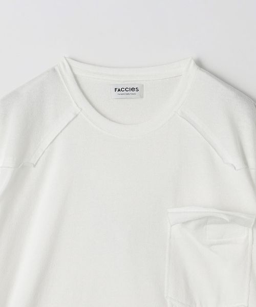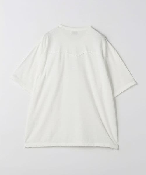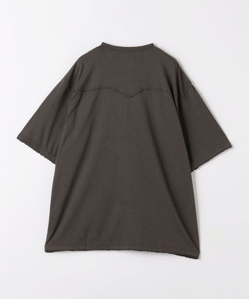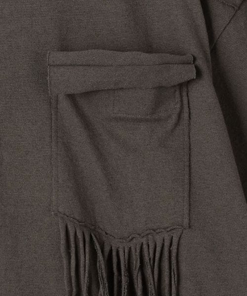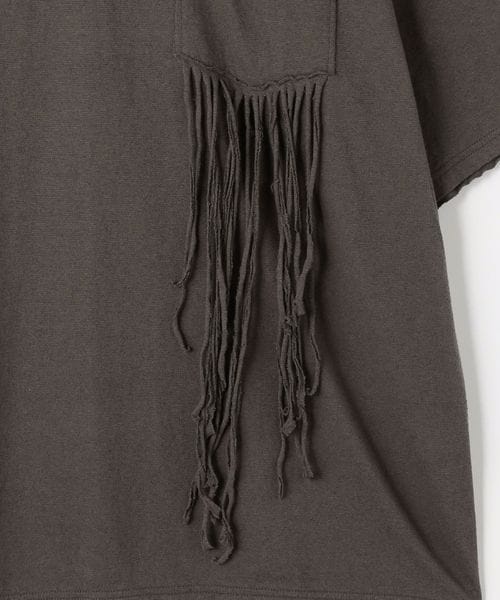 ポケット下のフリンジで流れ星の流れを表現したデザインが特徴のTシャツ。