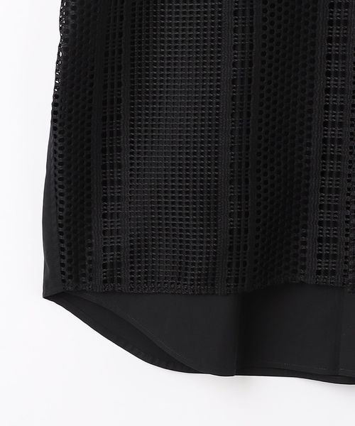 フロントでタイプライター生地とレース生地をレイヤードしたオーバーサイズシャツ。