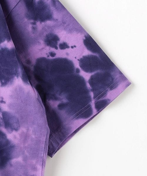 カラフルなタイダイ染めで、背面にはインパクトのある手書き風のロゴグラフィックを配置したビッグシルエットのTシャツ。