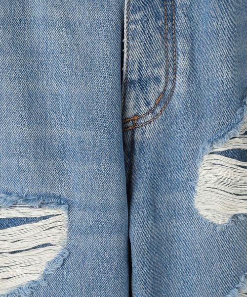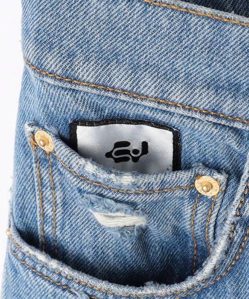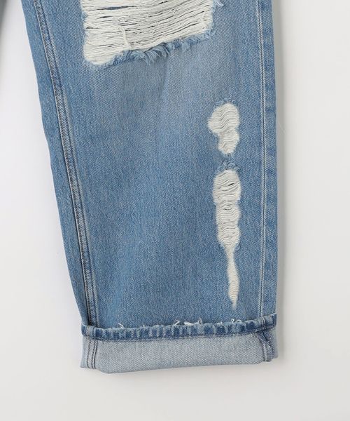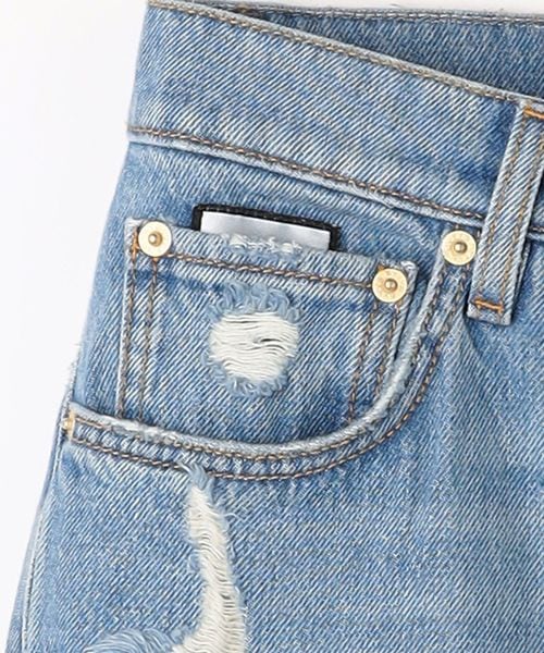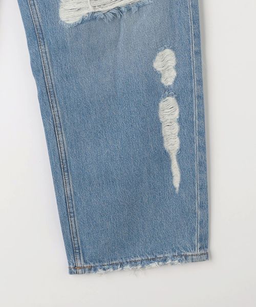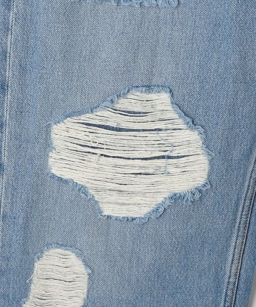 ボタンフライや5ポケットなどのトラディショナルなディテールはそのままに、ヴィンテージウォッシュを施した激しいダメージデニムが特徴です。