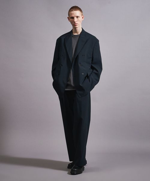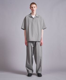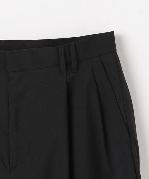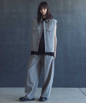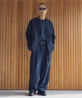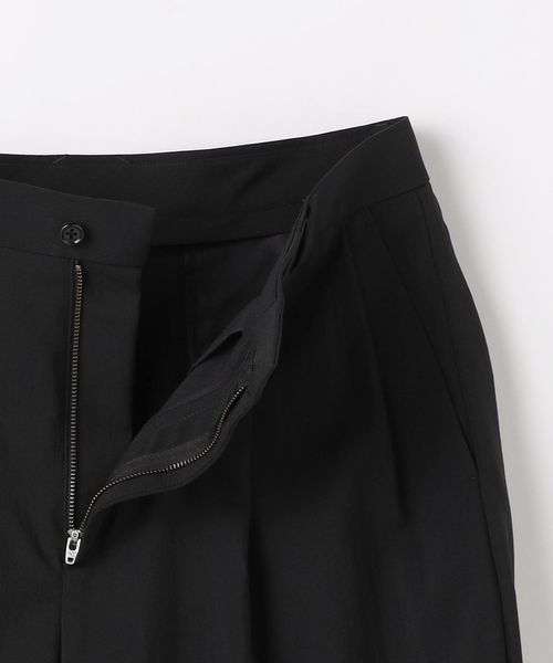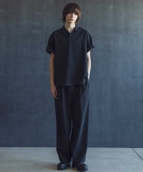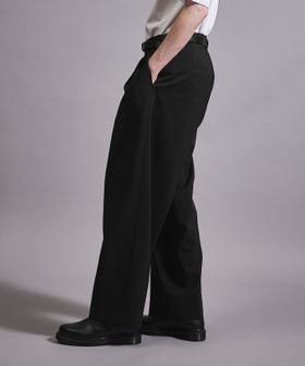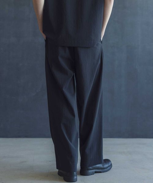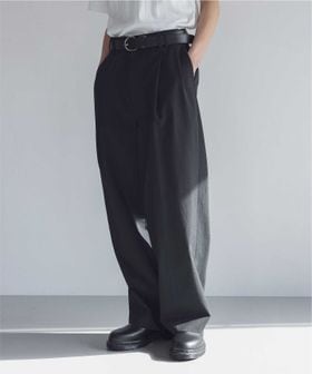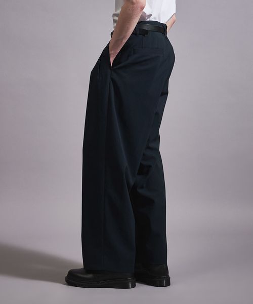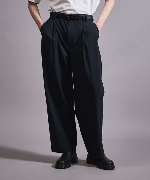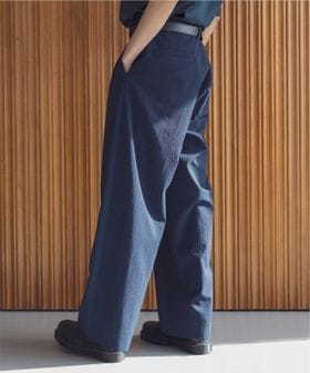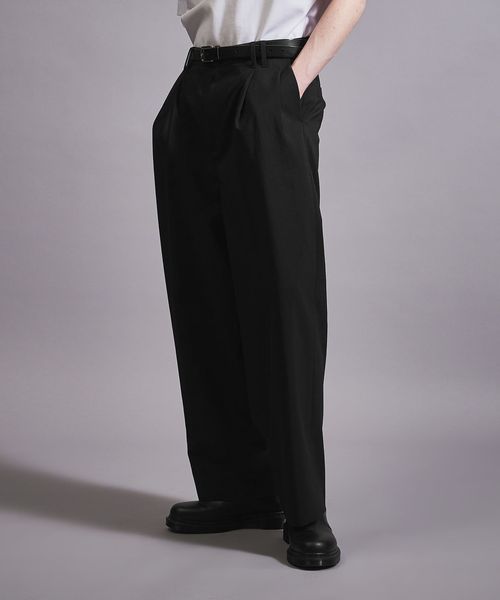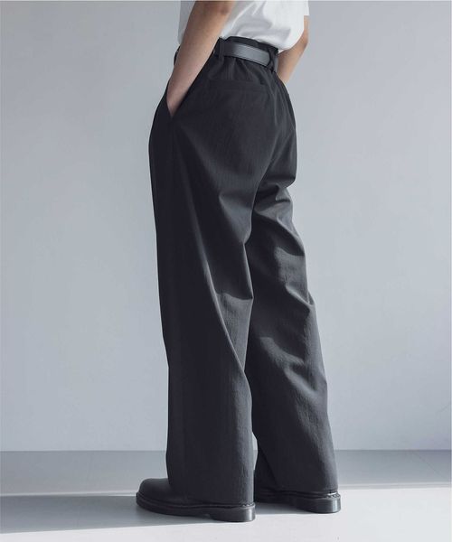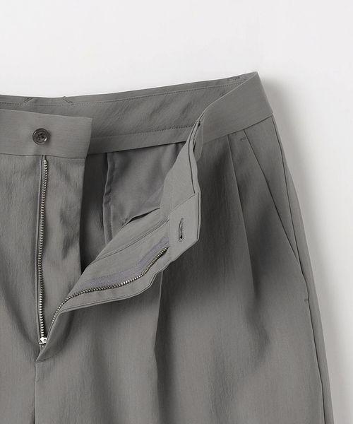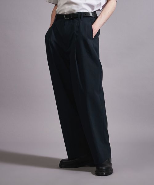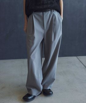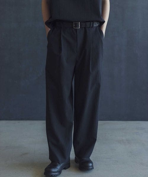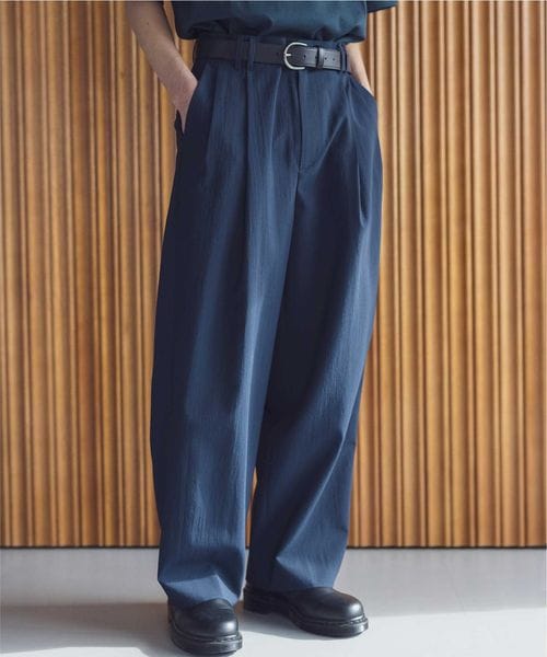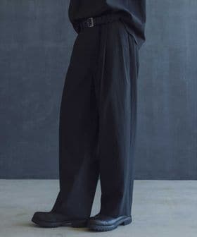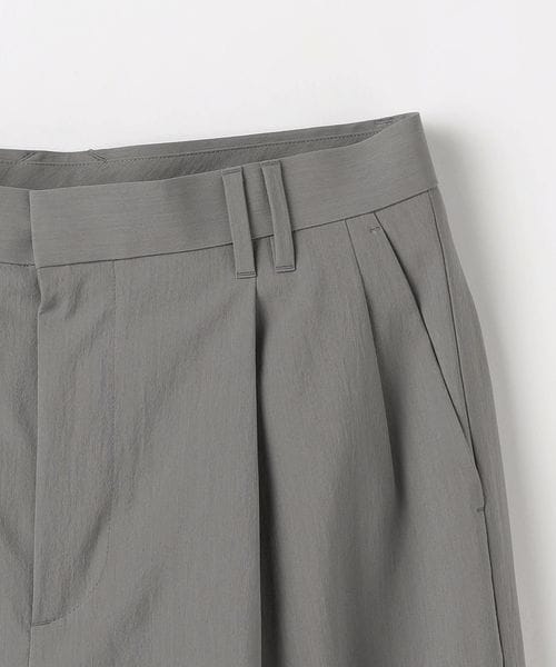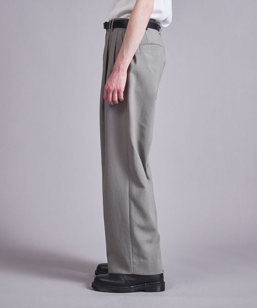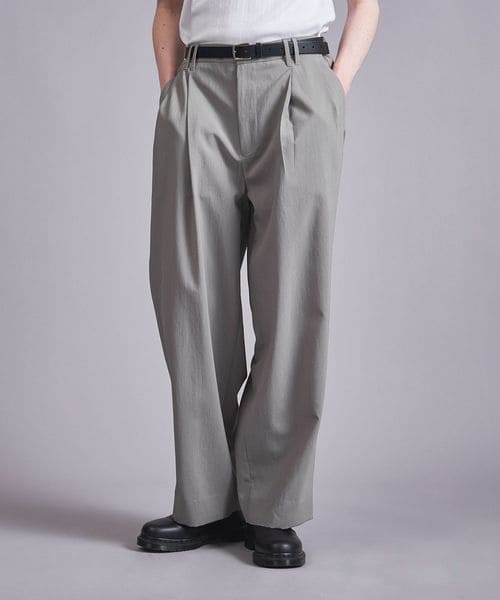 ウールライクなキレイ目の素材感ながらも麻のようなドライタッチに仕上げることで、肌離れが良く春夏シーズンに着用しやすいフロント2プリーツ入りのワイドシルエットパンツ。