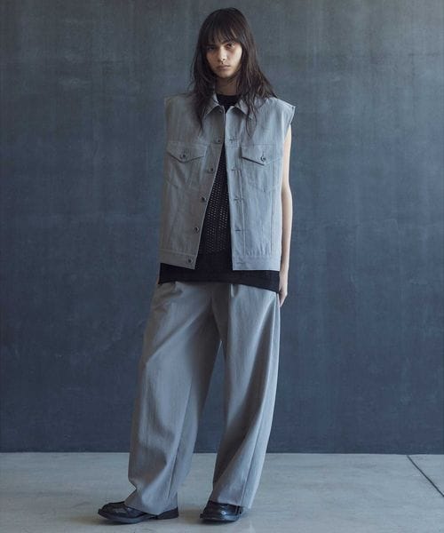 <monkey time>で人気の高いシルエットで、きれい目かつモードな印象で着用いただけるアイテムです。