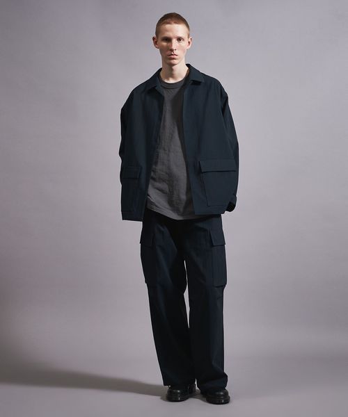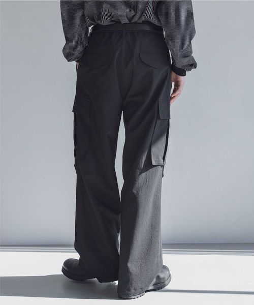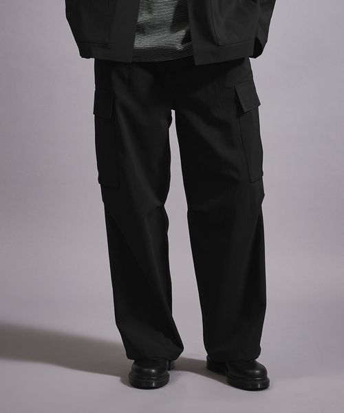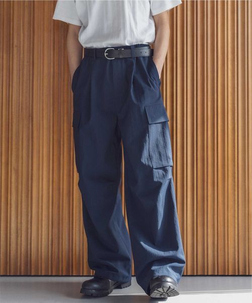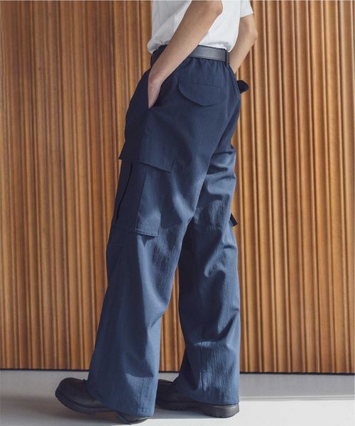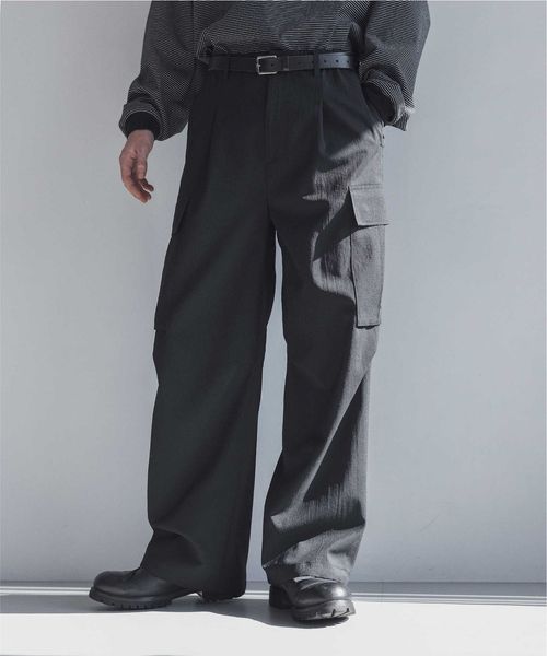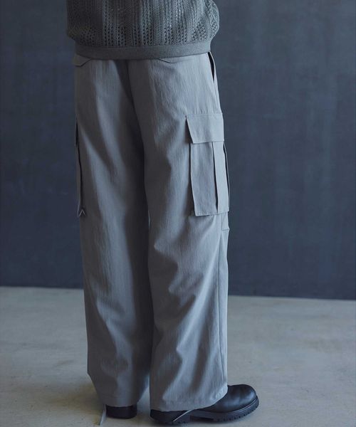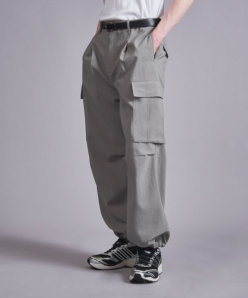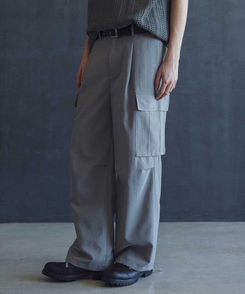ウールライクなキレイ目の素材感ながらも麻のようなドライタッチに仕上げることで、肌離れが良く春夏シーズンに着用しやすいカーゴパンツ。