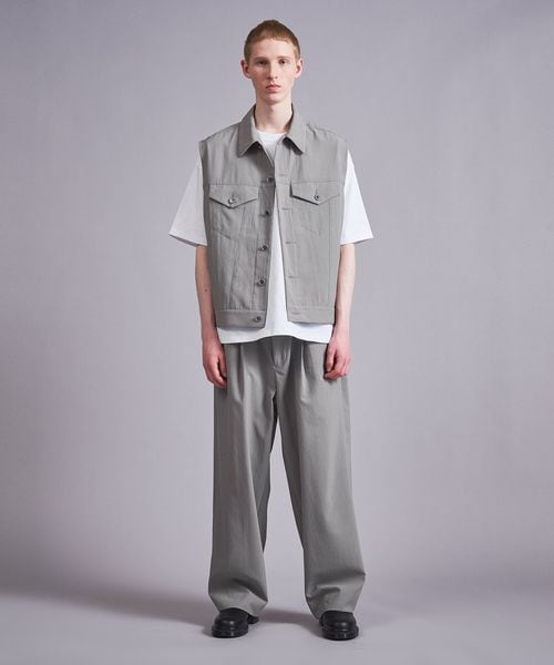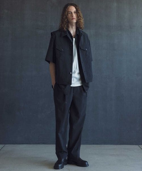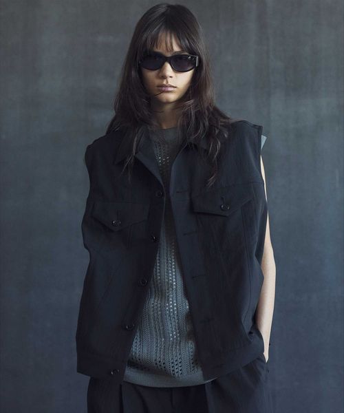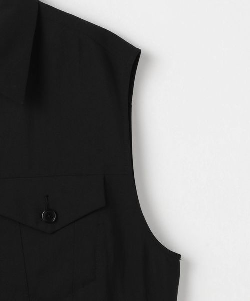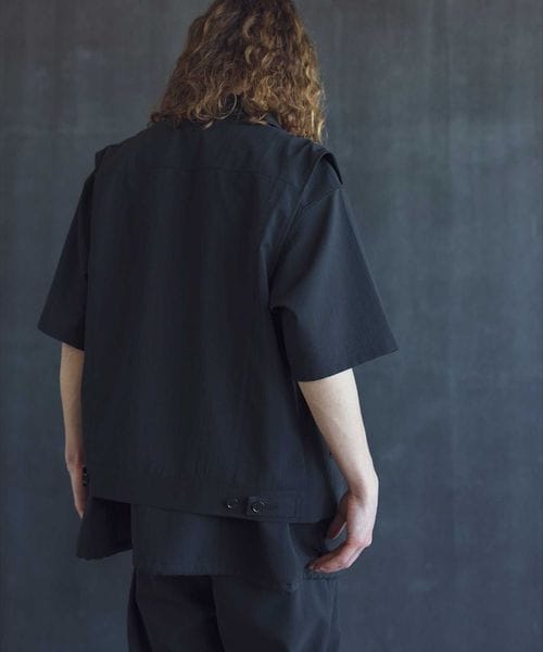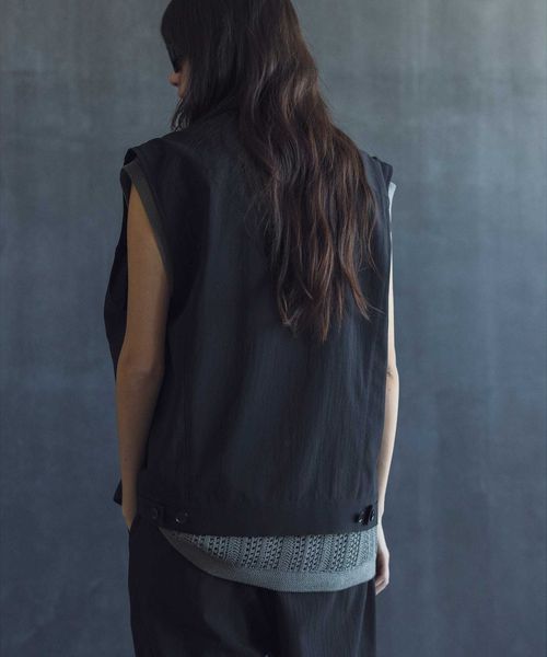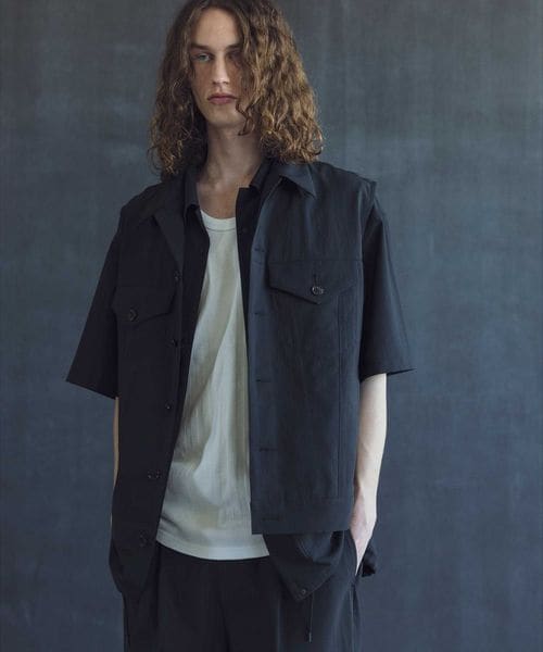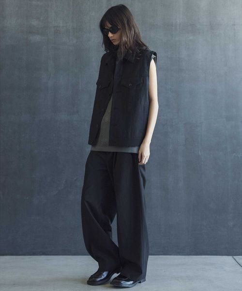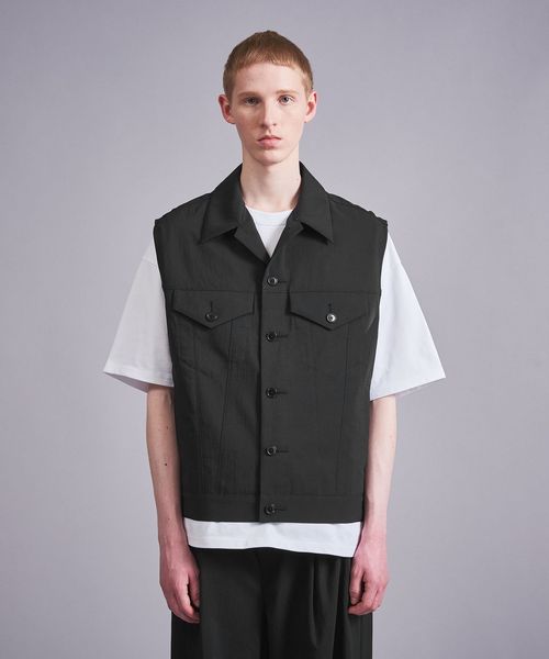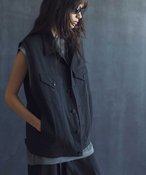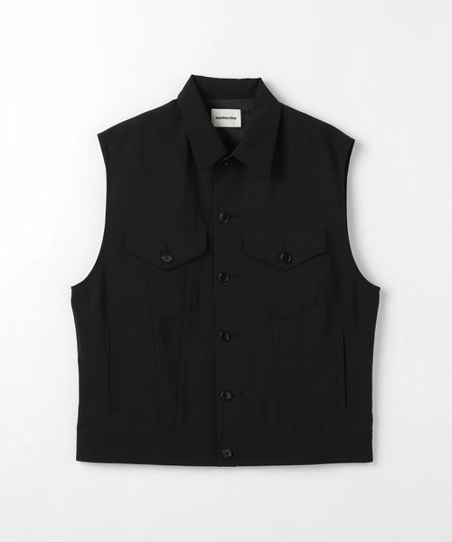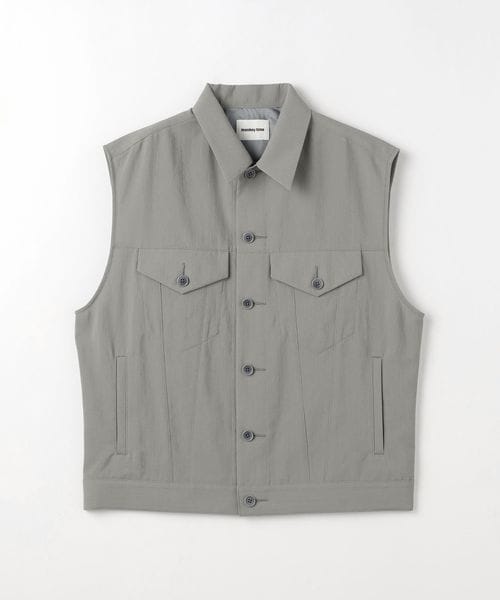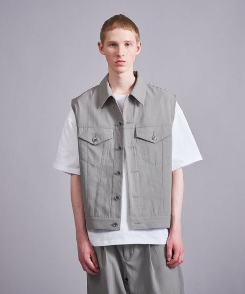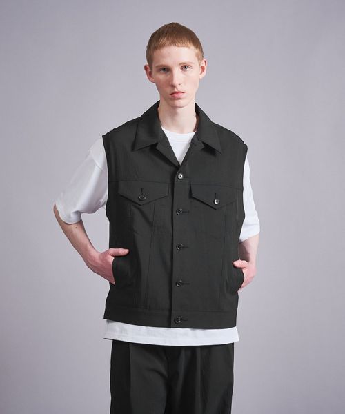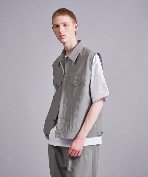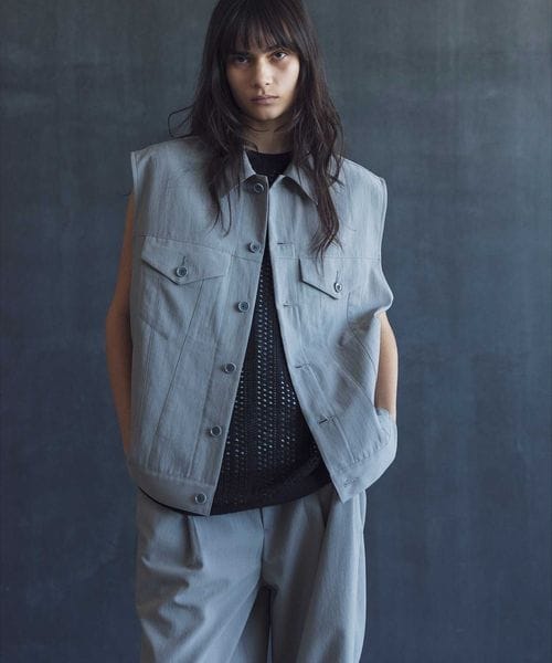 ウールライクなキレイ目の素材感ながらも麻のような肌離れの良いドライタッチで、夏シーズンも着用しやすく仕上げたべスト。