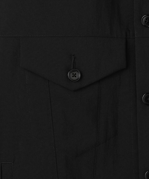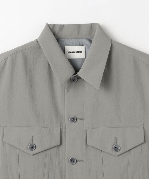 着こなしやすいシンプルな色味ながら、トラッカージャケットのデザインを採用したフロントのディテールがアクセント。