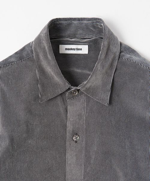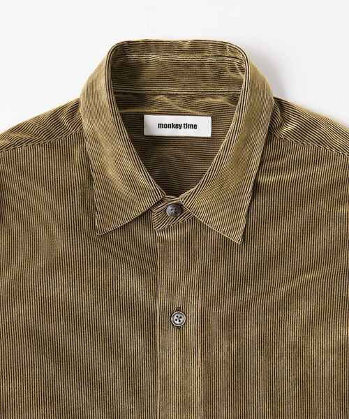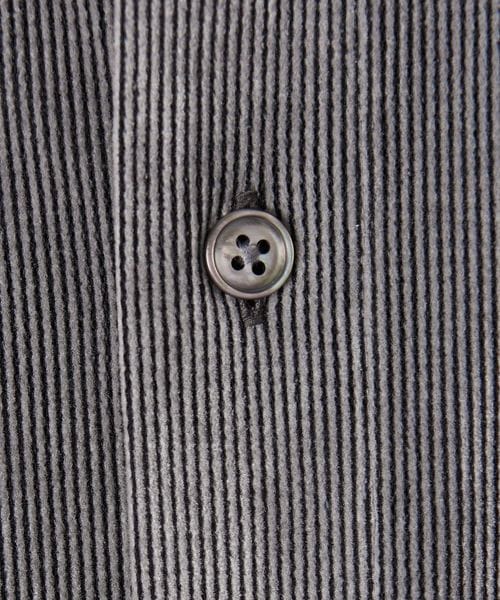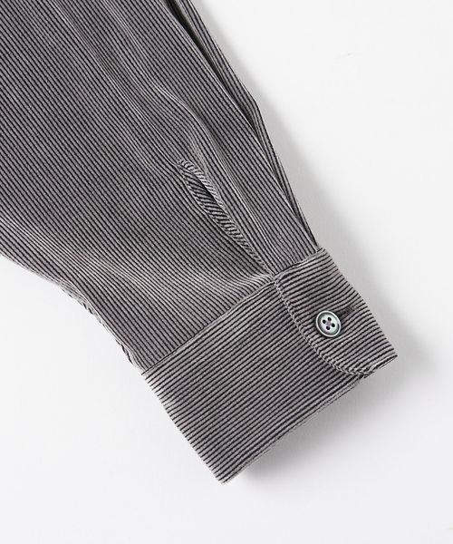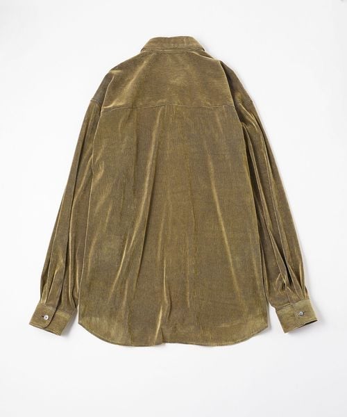 シアーなナイロン生地をベースに起毛感のある細畝組織のフロッキープリントを施した生地を採用したシャツ。