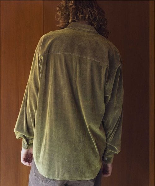 コーデュロイ生地のような見え方ながらもフロッキープリントがのっていない箇所は透け感があり、秋に向けた温かみのある季節感とシアー感が楽しめるゆとりのあるサイズ感に仕上げています。