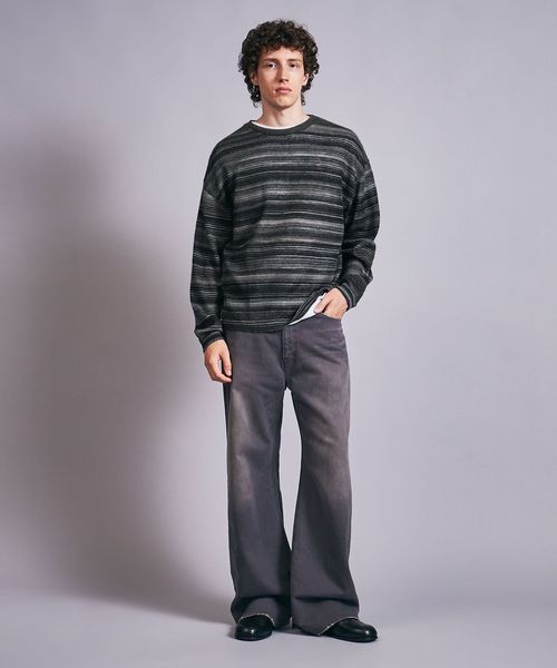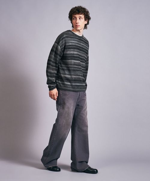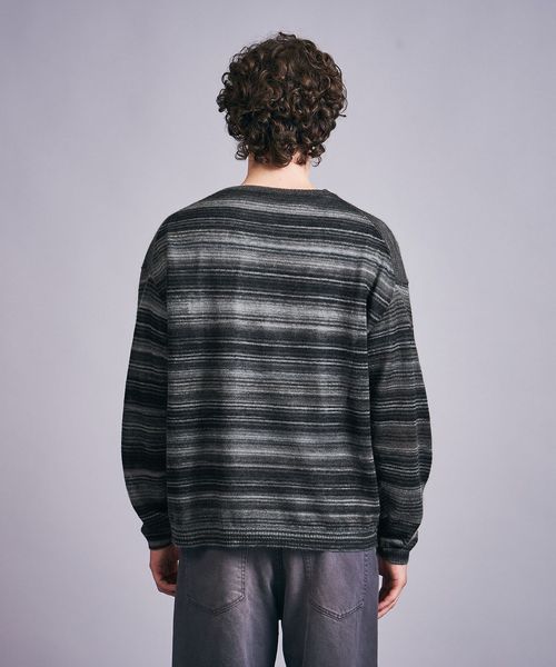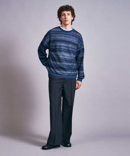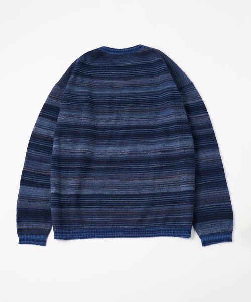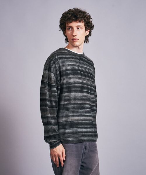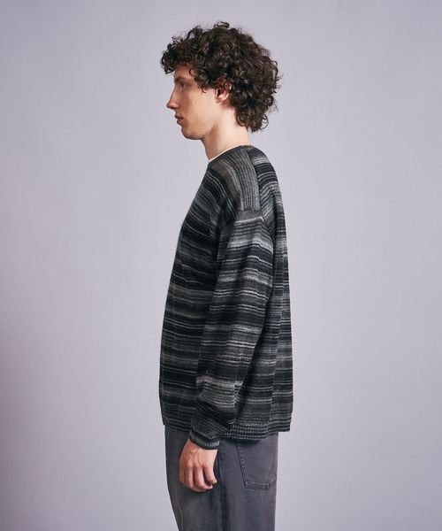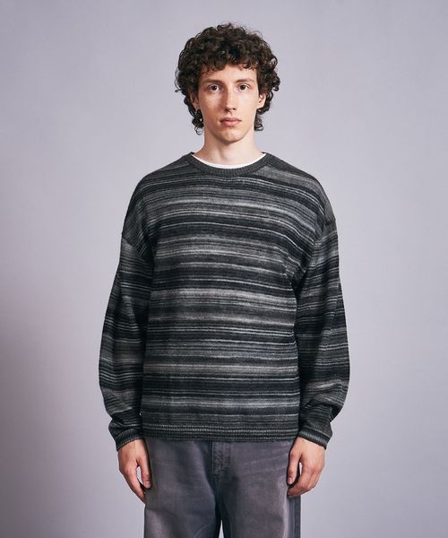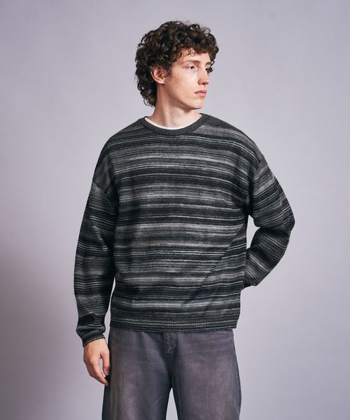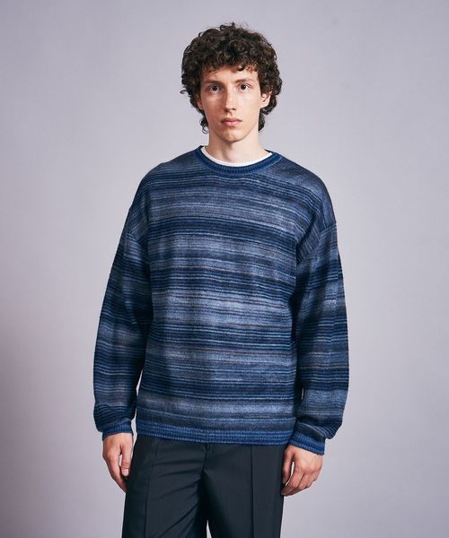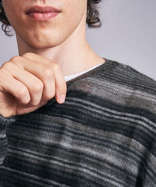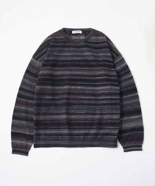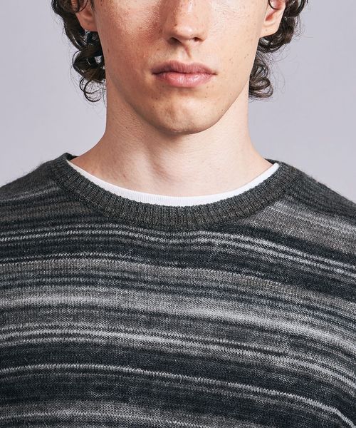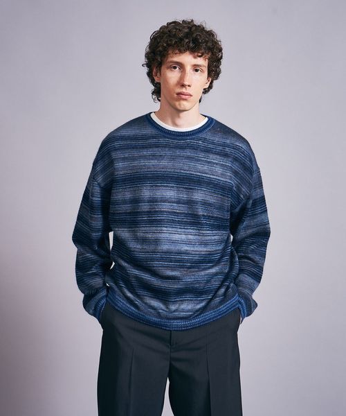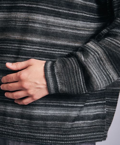 モヘヤ混の糸を使用したシアー感のあるグラデーションボーダーのニット。