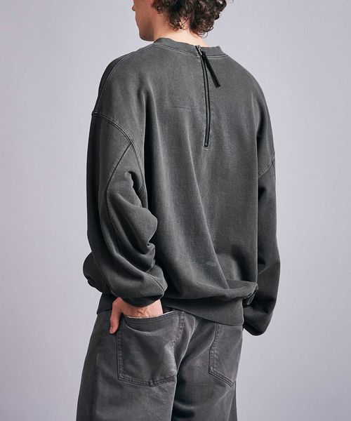 ガーメントダイ フレンチテリー バックジップ クルーネック スウェット