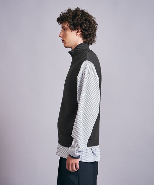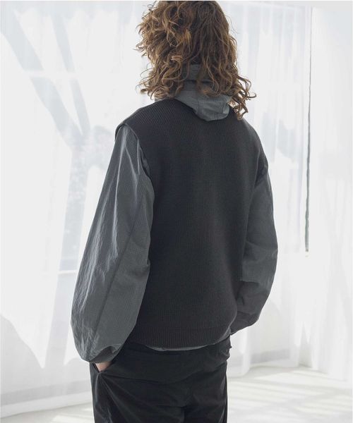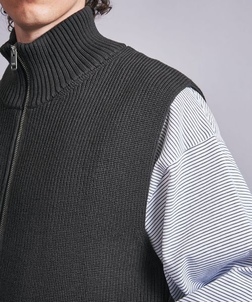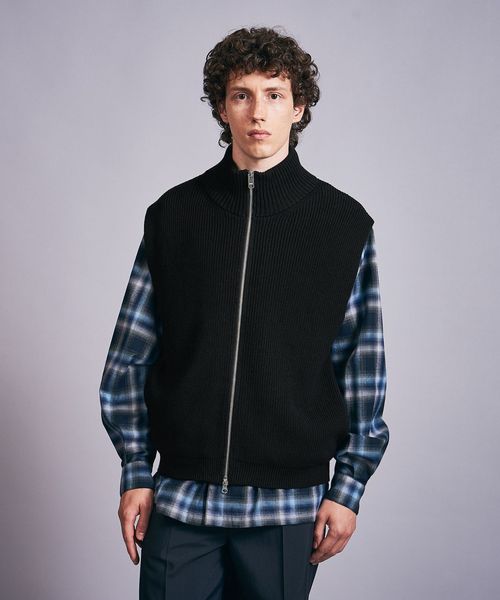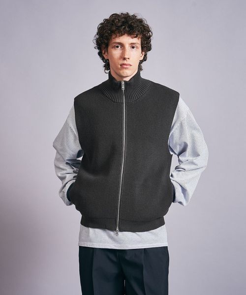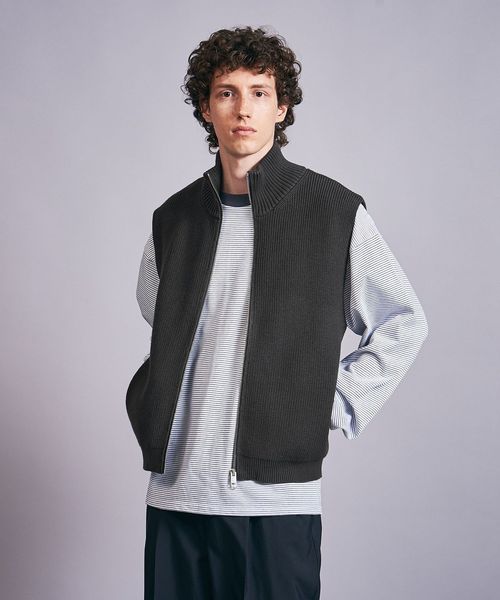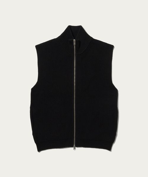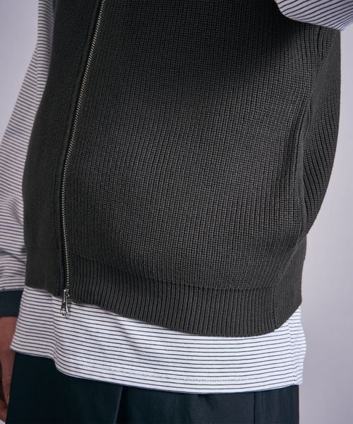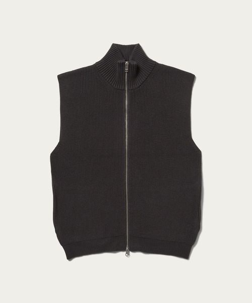バルキーなアクリルコットンの糸をベースに編み上げた畦編のドライバーズベスト。