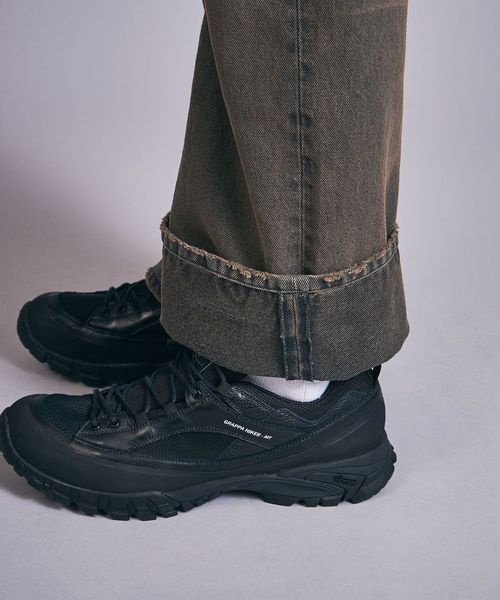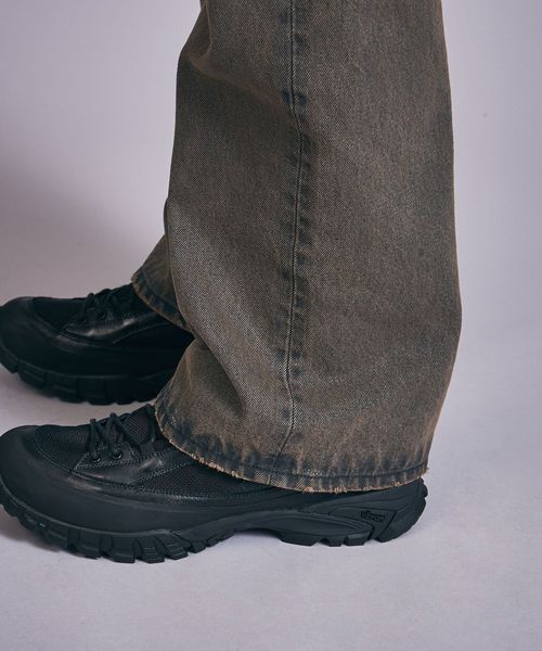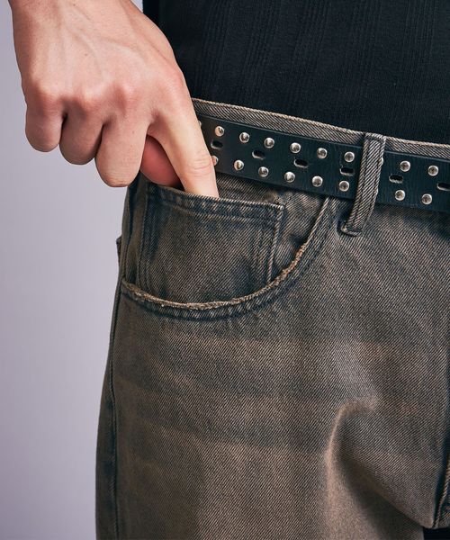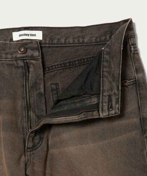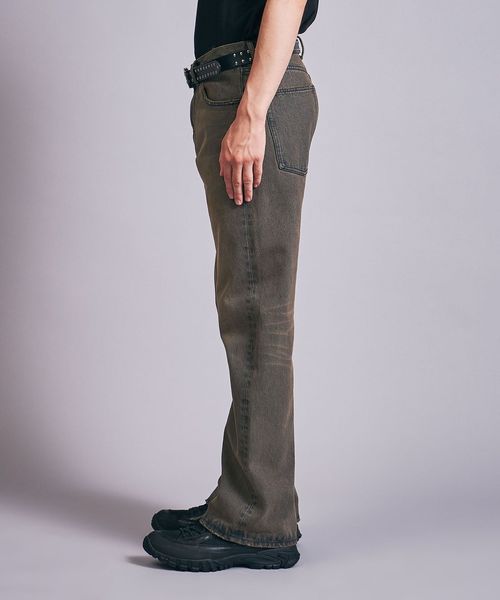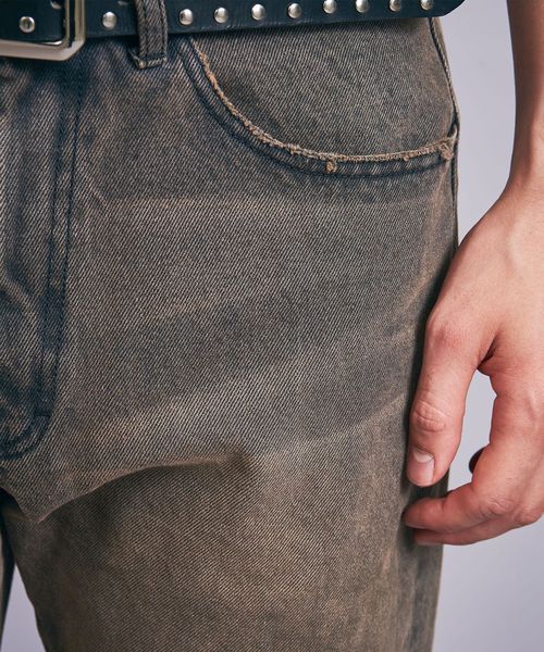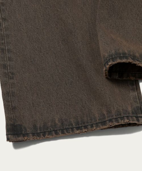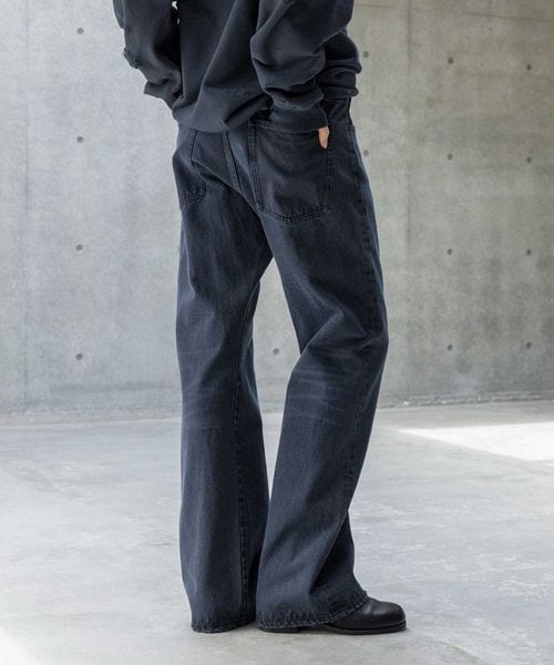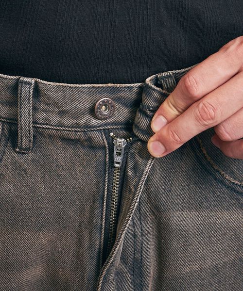 退色加工後にオーバーダイを施すことでビンテージにはない今日的なデニムパンツに仕上げています。