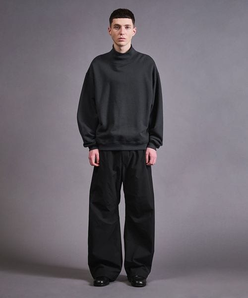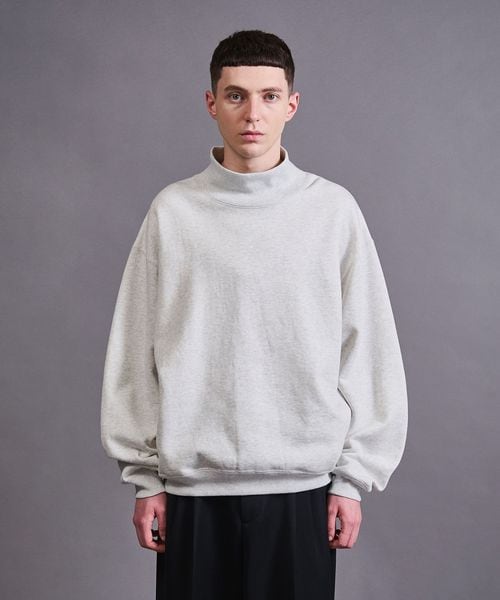 しっかりとした肉感の裏毛(裏微起毛加工)を使用したハイネックスウェット。