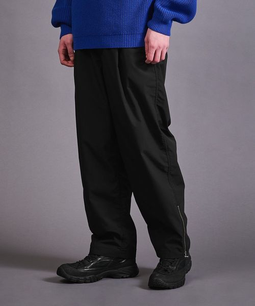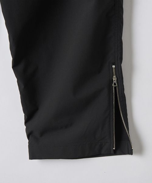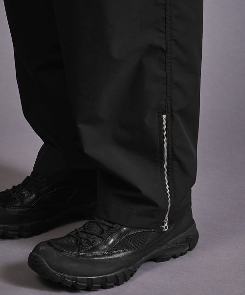 ウエストはゴムシャーリング入りでベルトループも装備しており、裾にはアクセントになる開閉可能なファスナーを搭載しています。