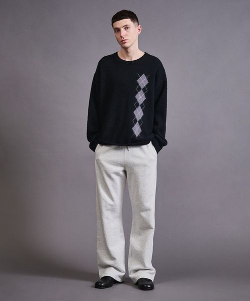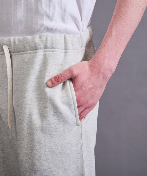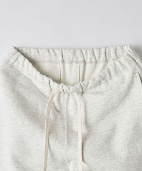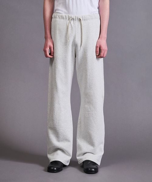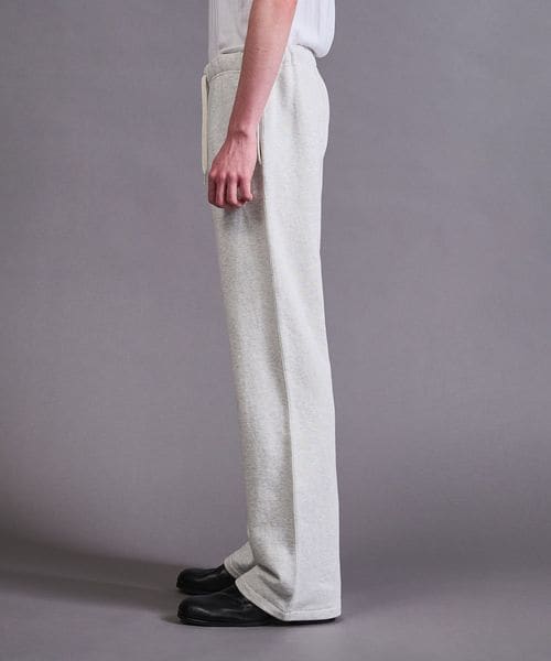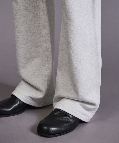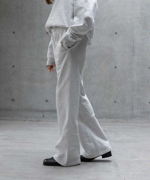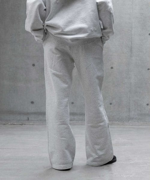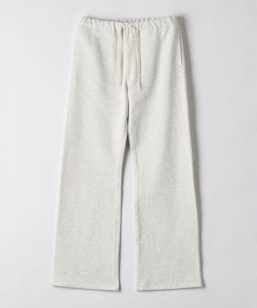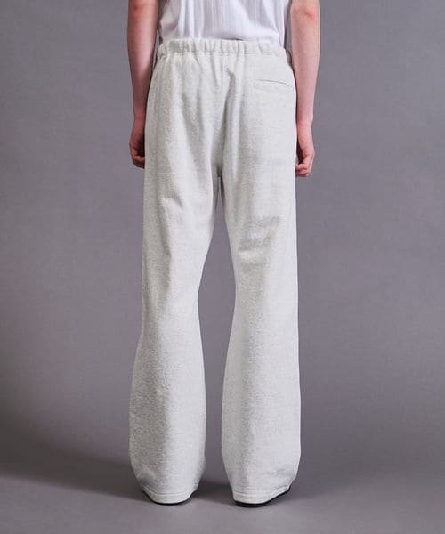 しっかりとした肉感の裏毛(裏微起毛加工)を使用した裾にかけてやや広がるセミフレアシルエットのスウェットパンツ。