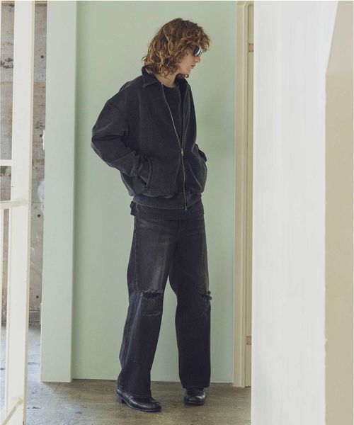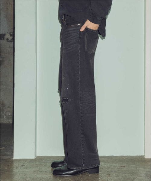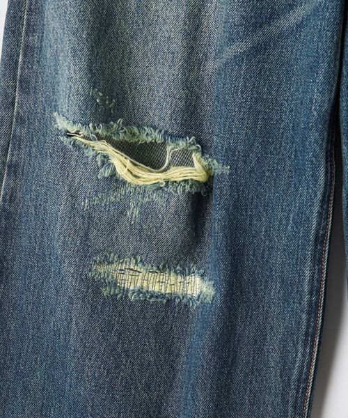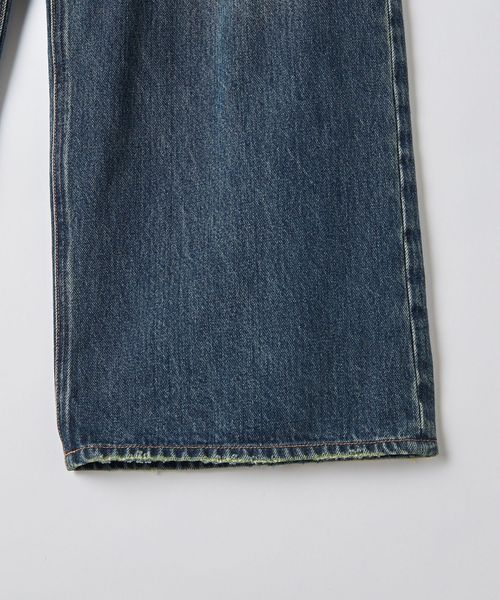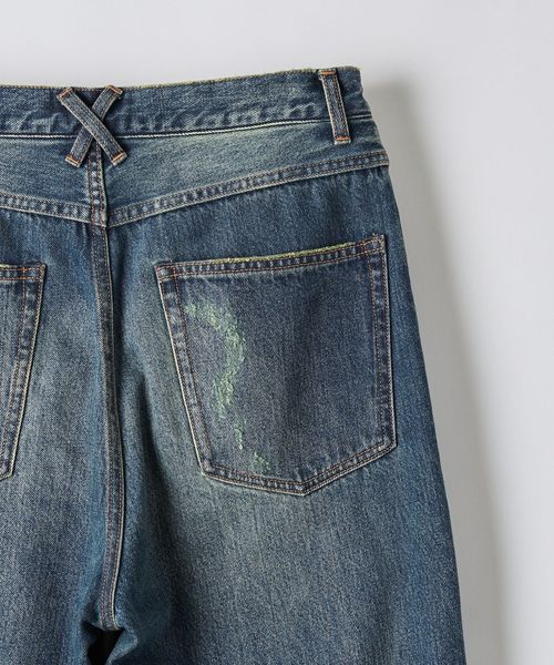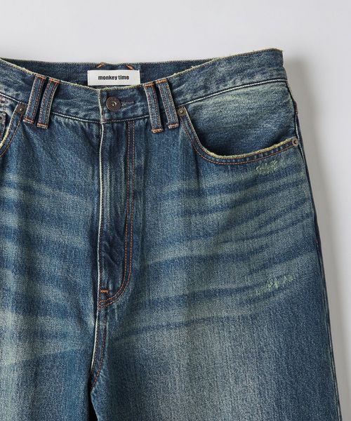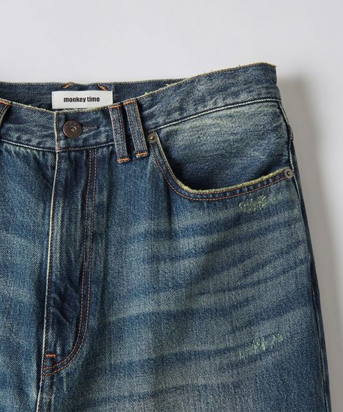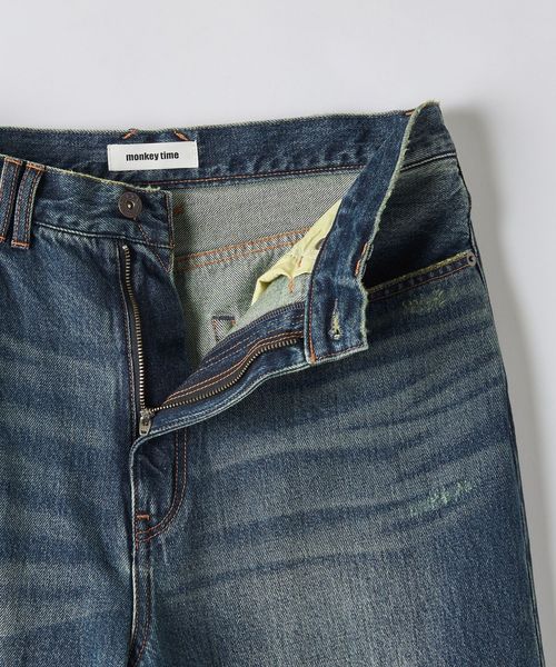 monkey timeで人気の高いバギーシルエットを採用し、ダメージとリペア加工を施した後に最終工程で製品染めを施すことでビンテージや古着のデニムパンツとは一味違うアイテムに仕上げています。