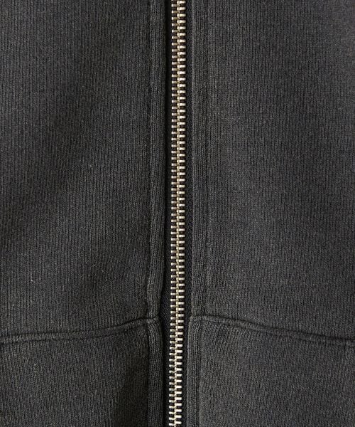 度詰めがされたしっかりとした肉感の裏毛(裏起毛無し)を使用したスウェットフルジップフーディー。