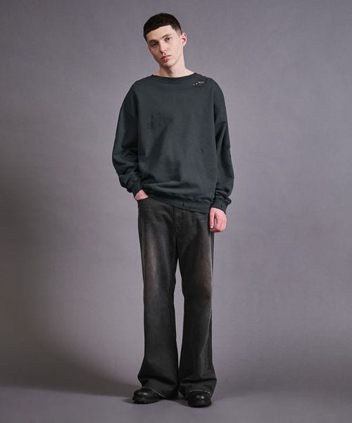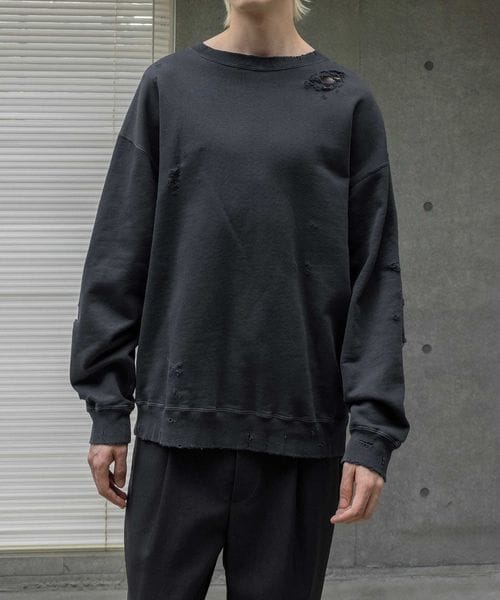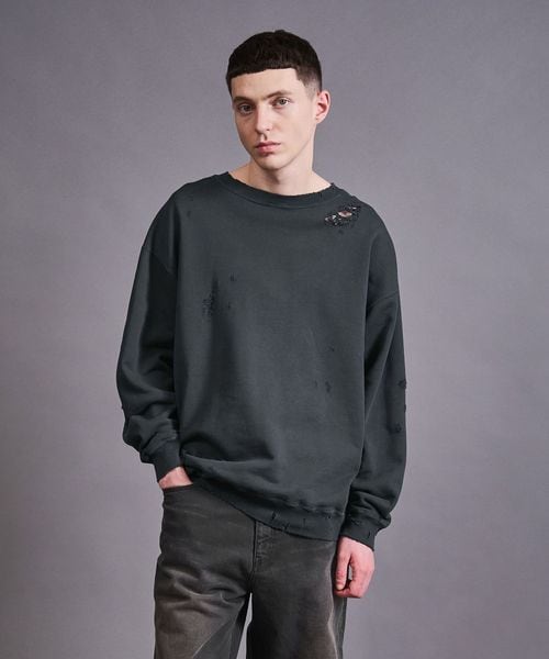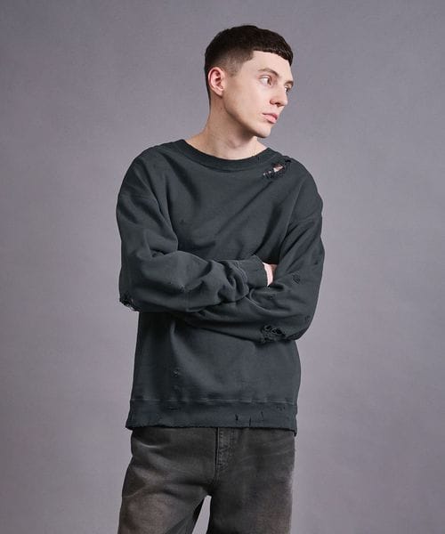 フレンチテリー ディストレスド クルーネック スウェット