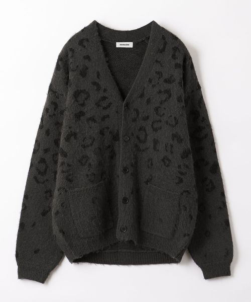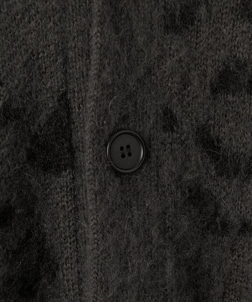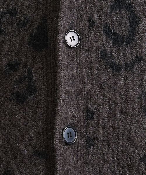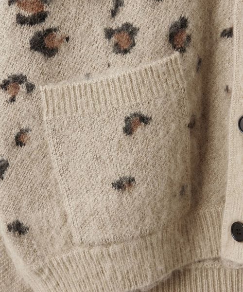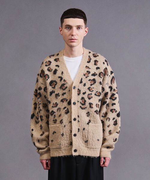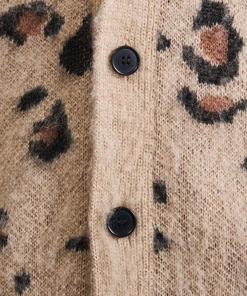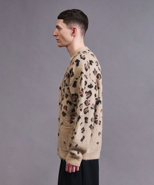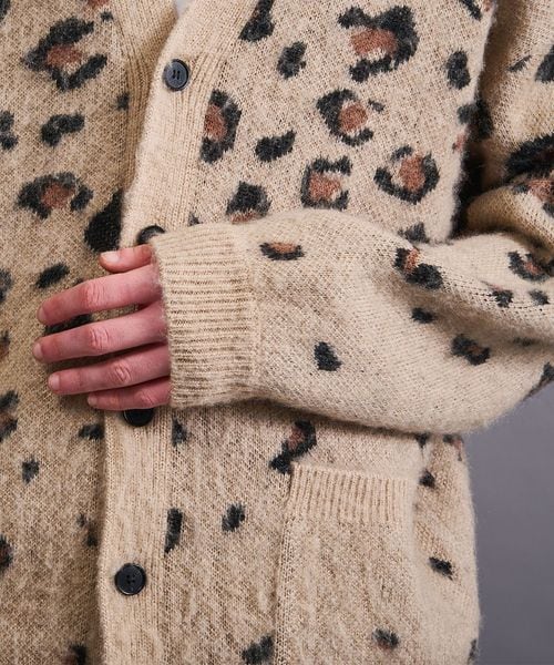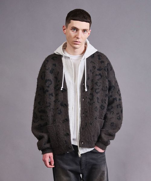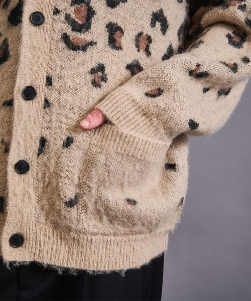 モヘヤ混の糸を使用しジャカードでレオパード柄を編んだニットカーデイガン。