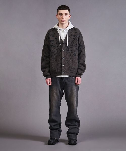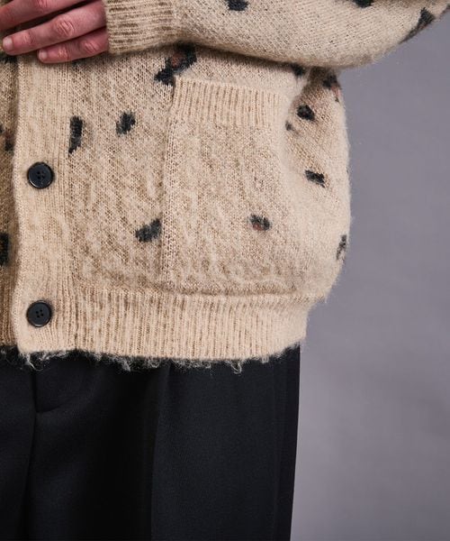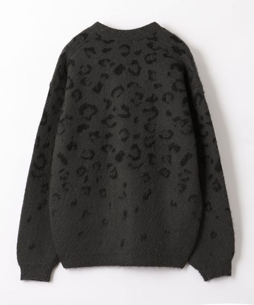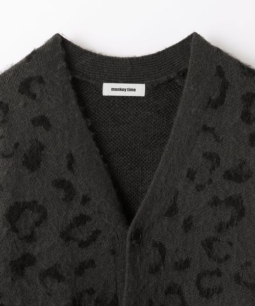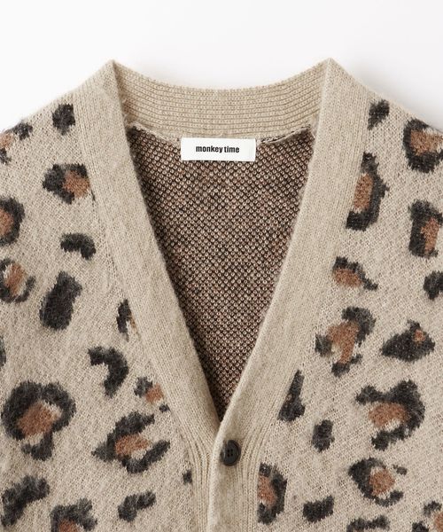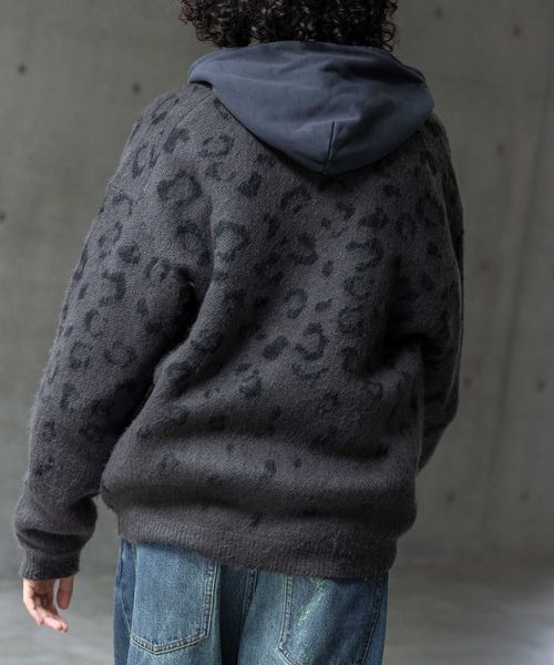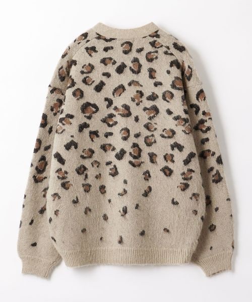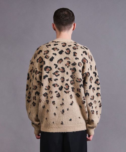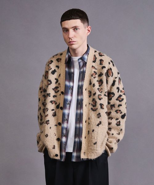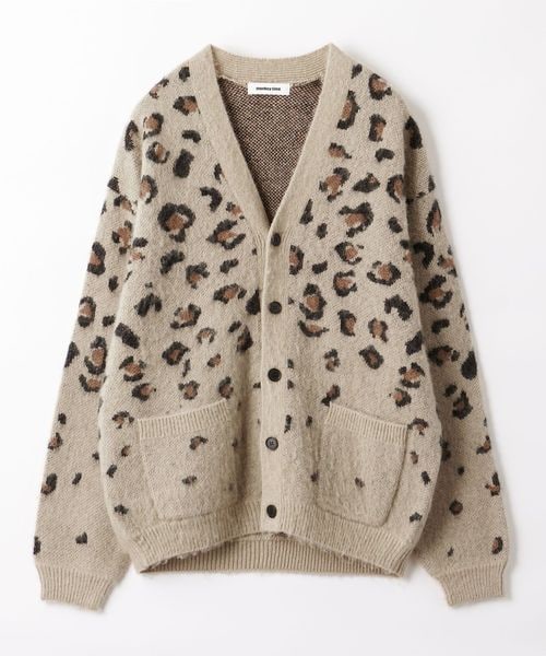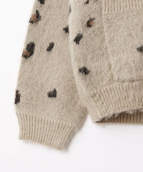 モヘヤ混の糸を使用しジャカードでレオパード柄を編んだニットカーデイガン。