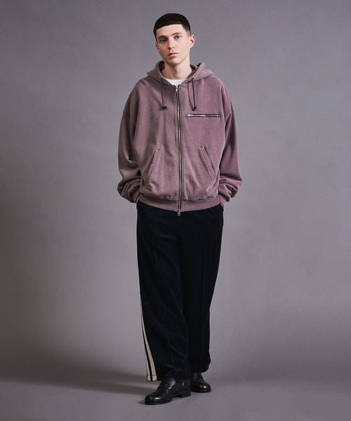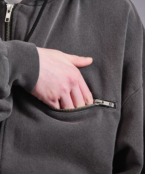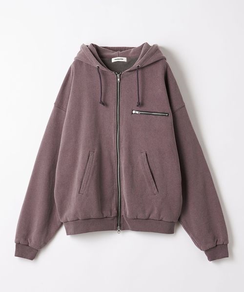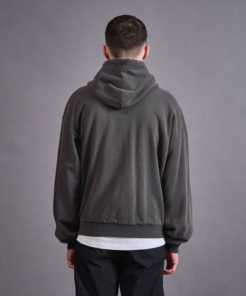 度詰めがされたしっかりとした肉感の生地を使用したスウェットフルジップフーディー。