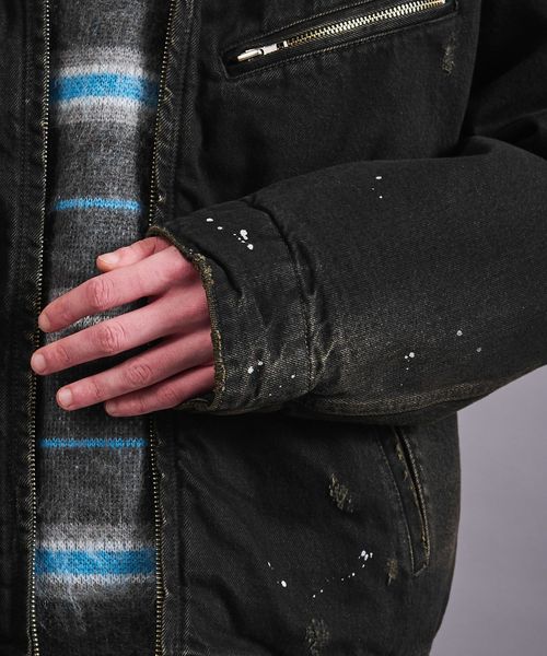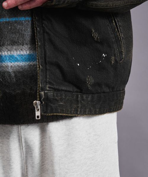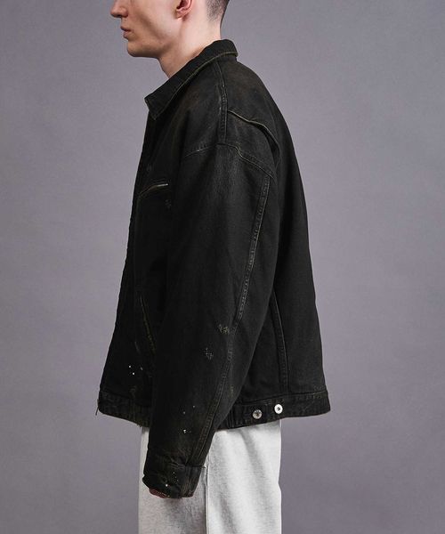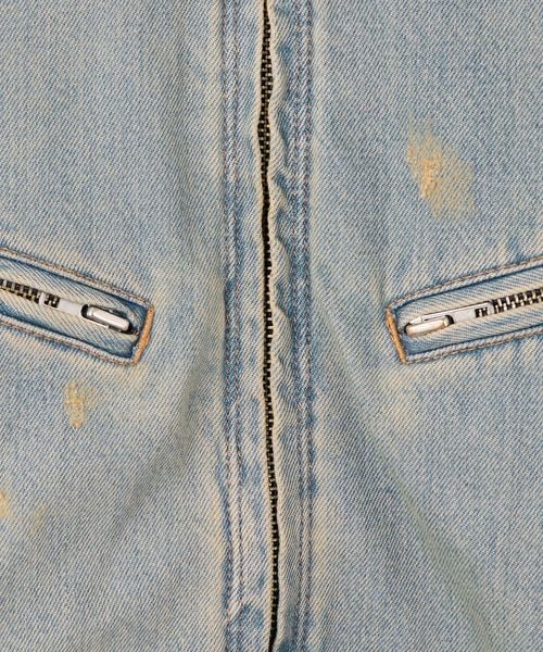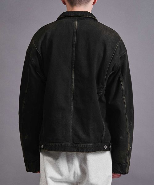 13オンス程度のデニムを使用し退色加工とオーバーダイを施したワークジャケット。